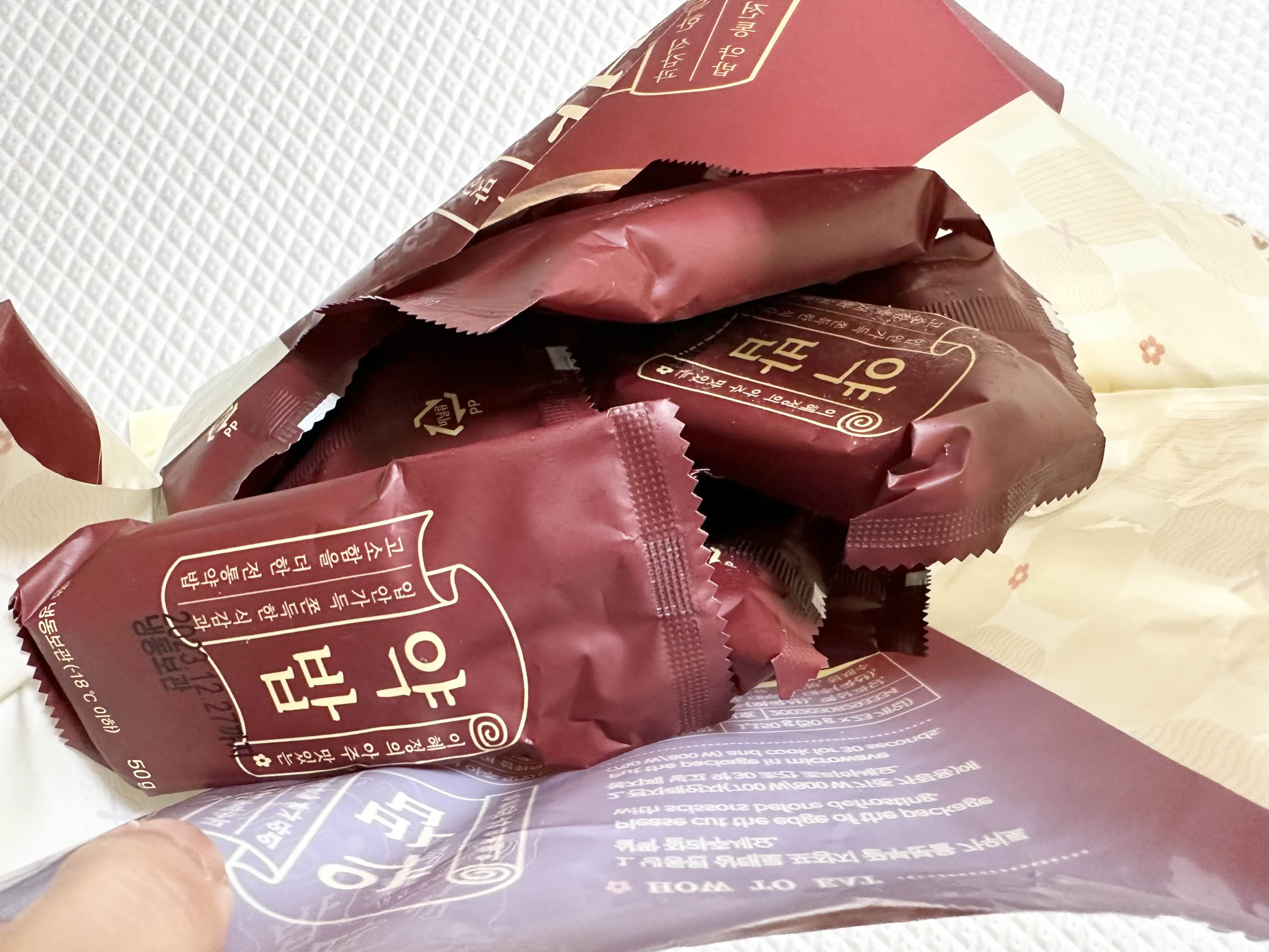 냉동된 상태라 푸석해보이지만 전자레인지에 30초 돌리면 달라진다구요~
