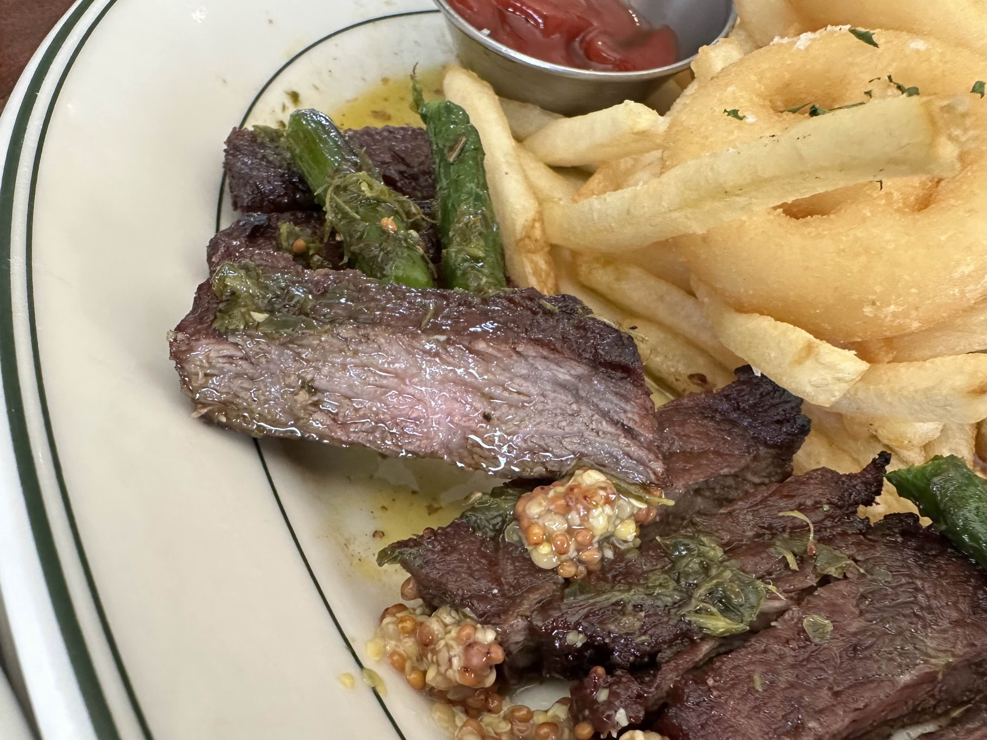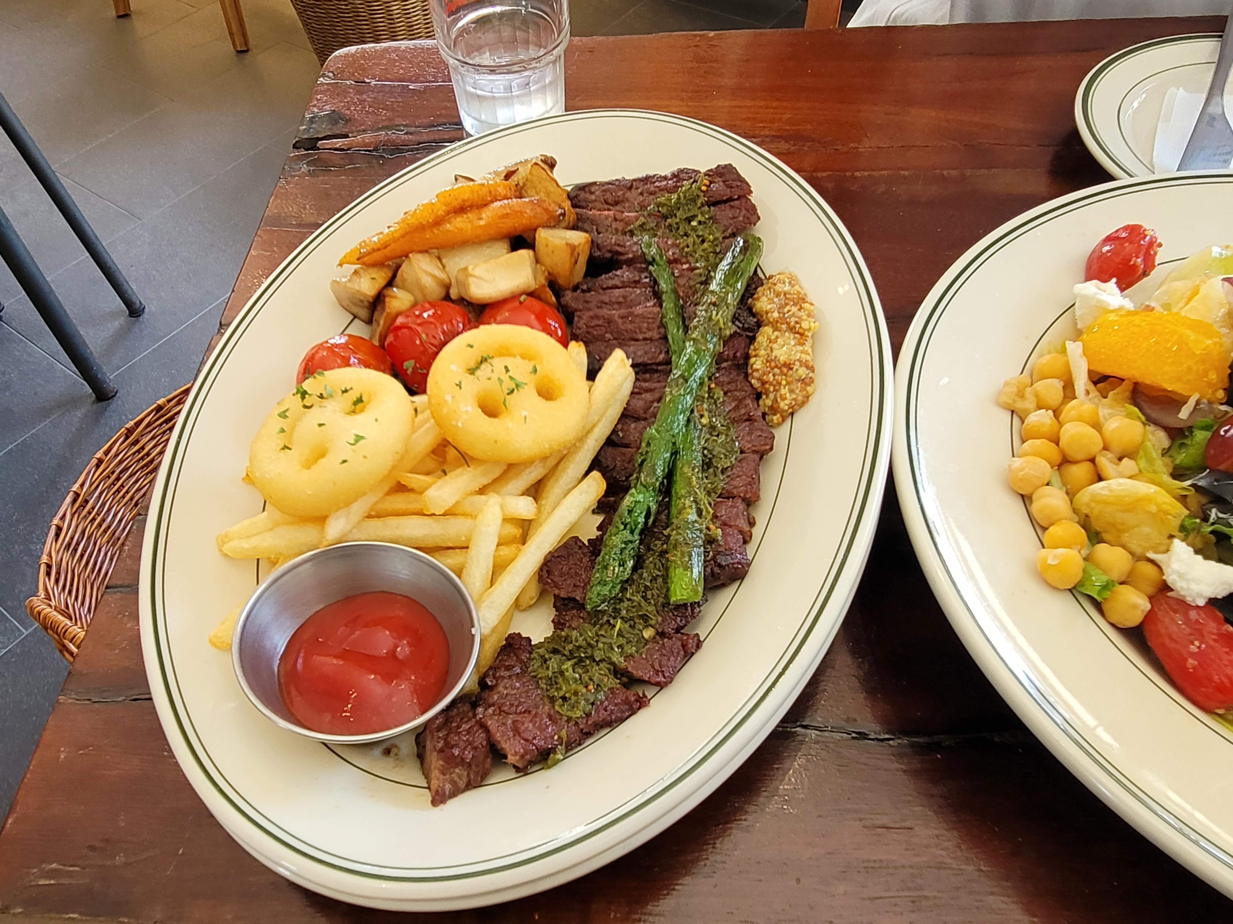 부위는 살치살스테이크인데 미디움보다 약간 더 익혀서 나온 듯 했습니다
