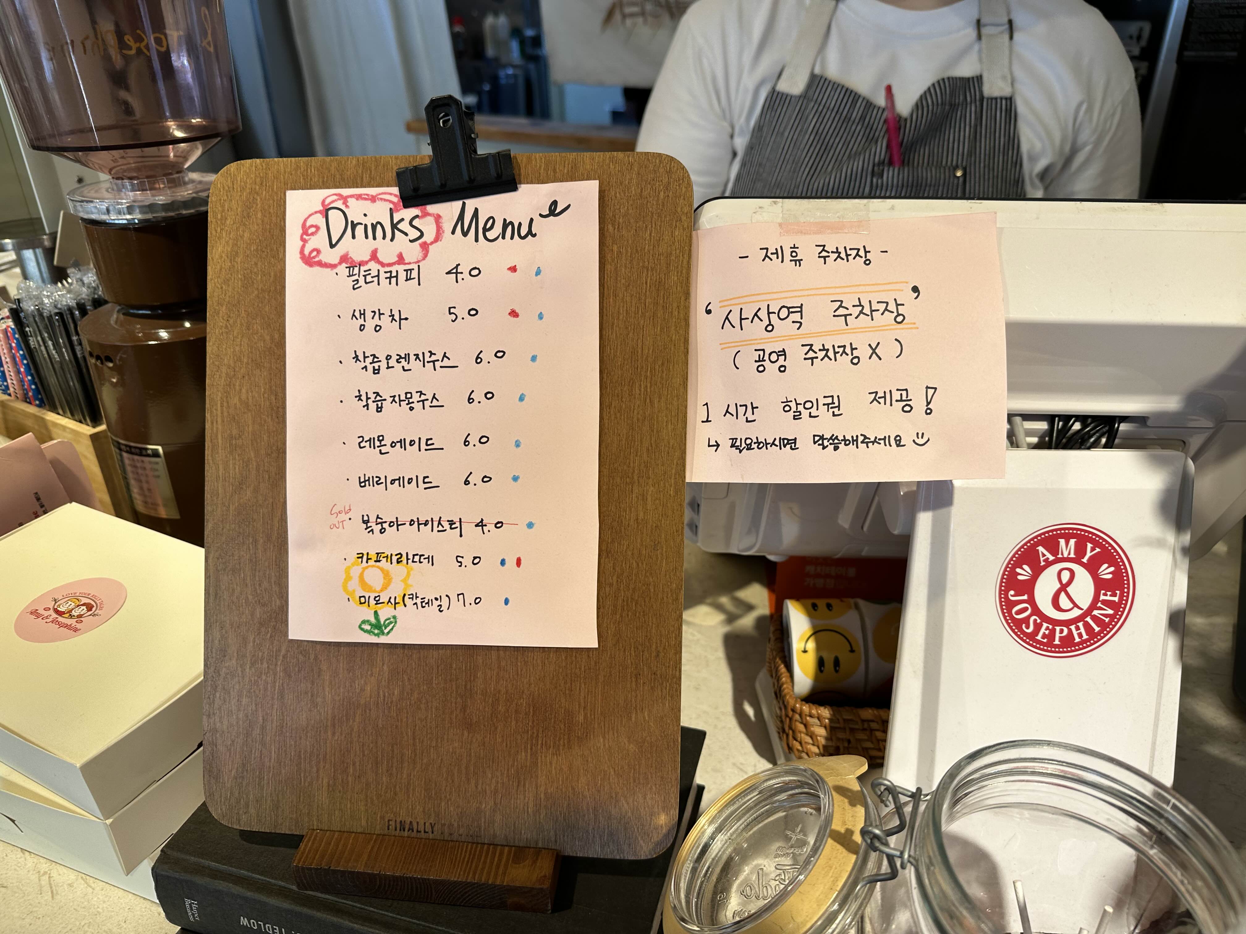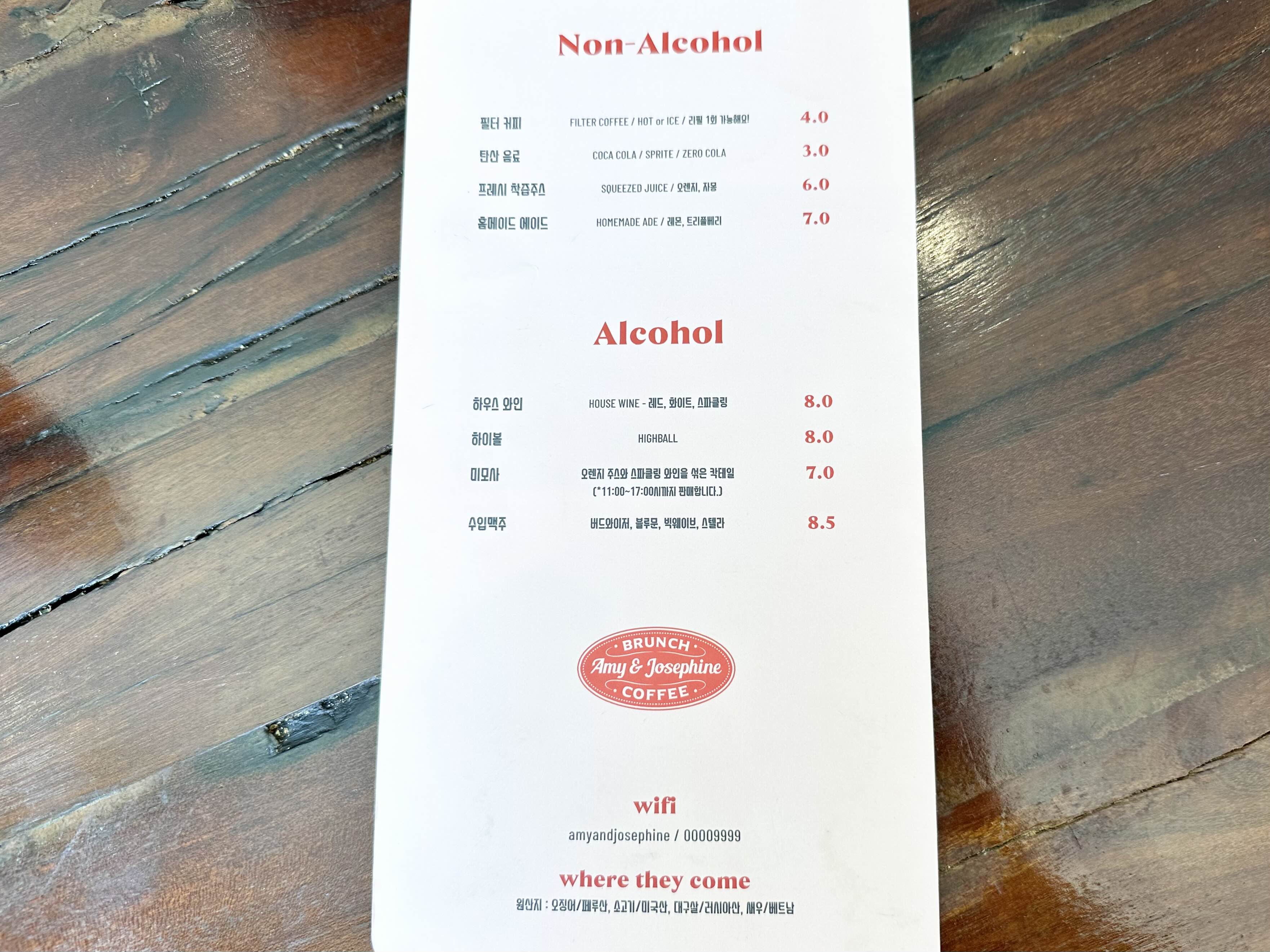 사상 브런치 맛집 에이미앤조세핀 음료 메뉴입니다