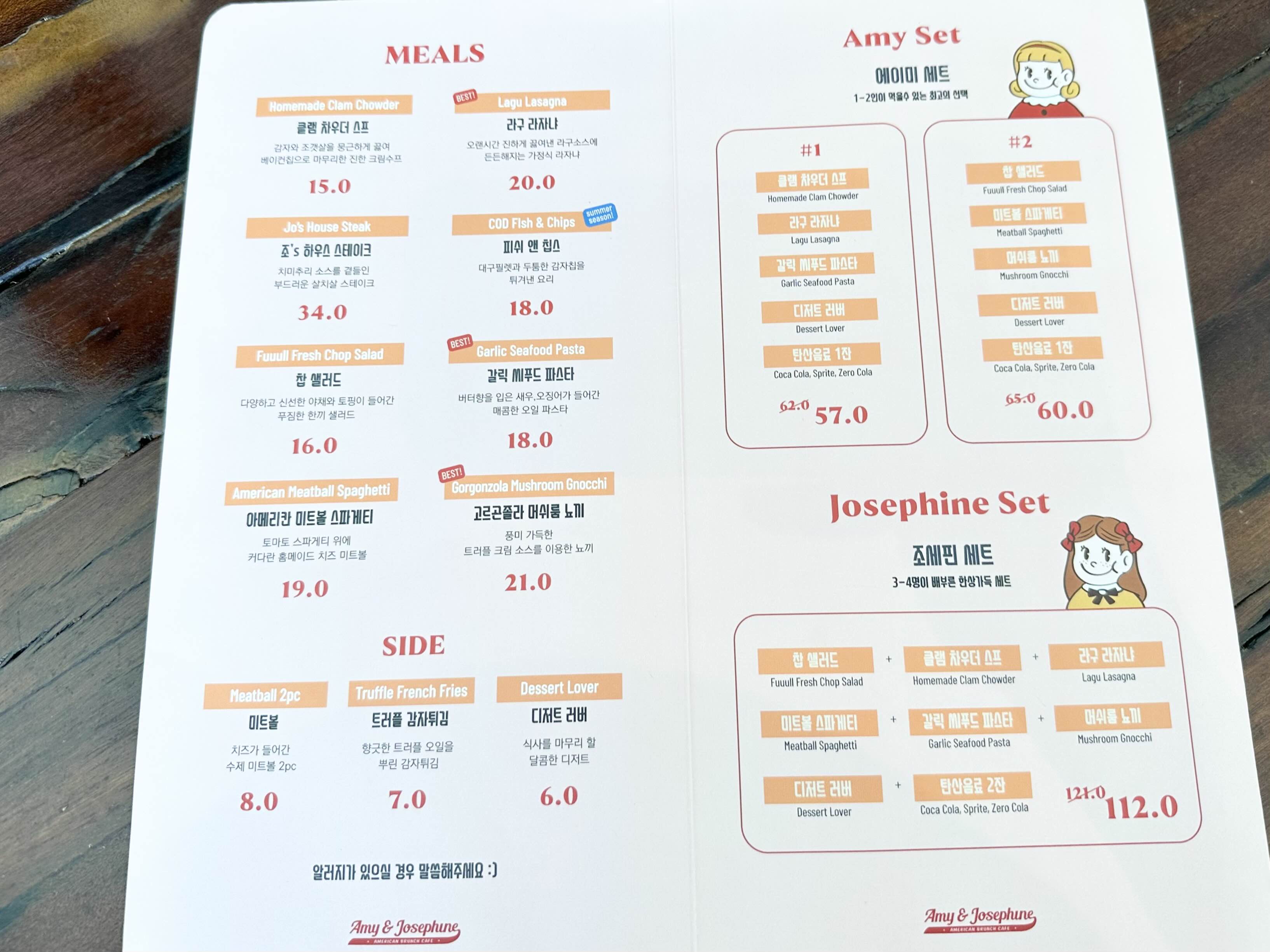 데이트코스로 추천하는 사상 브런치 맛집 에이미앤조세핀 메뉴와 가격입니다