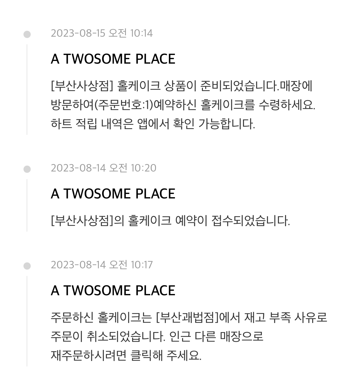 처음 주문한 지점이 말없이 취소를 해버려서 두번째로 가까운 지점에서 홀케이크를 주문을 했습니다