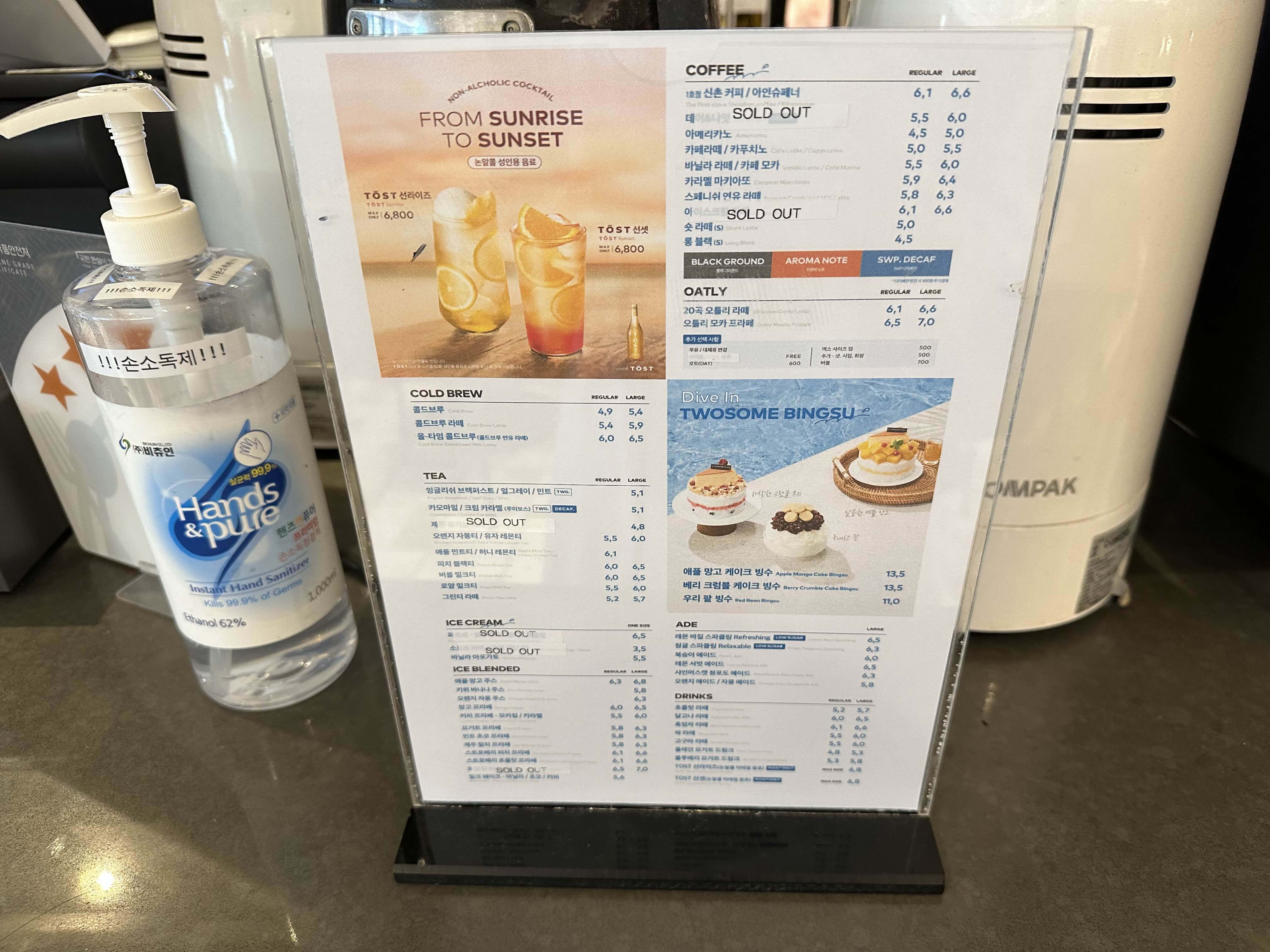 이제보니 의외로 음료 가격이 좀 나가네요?