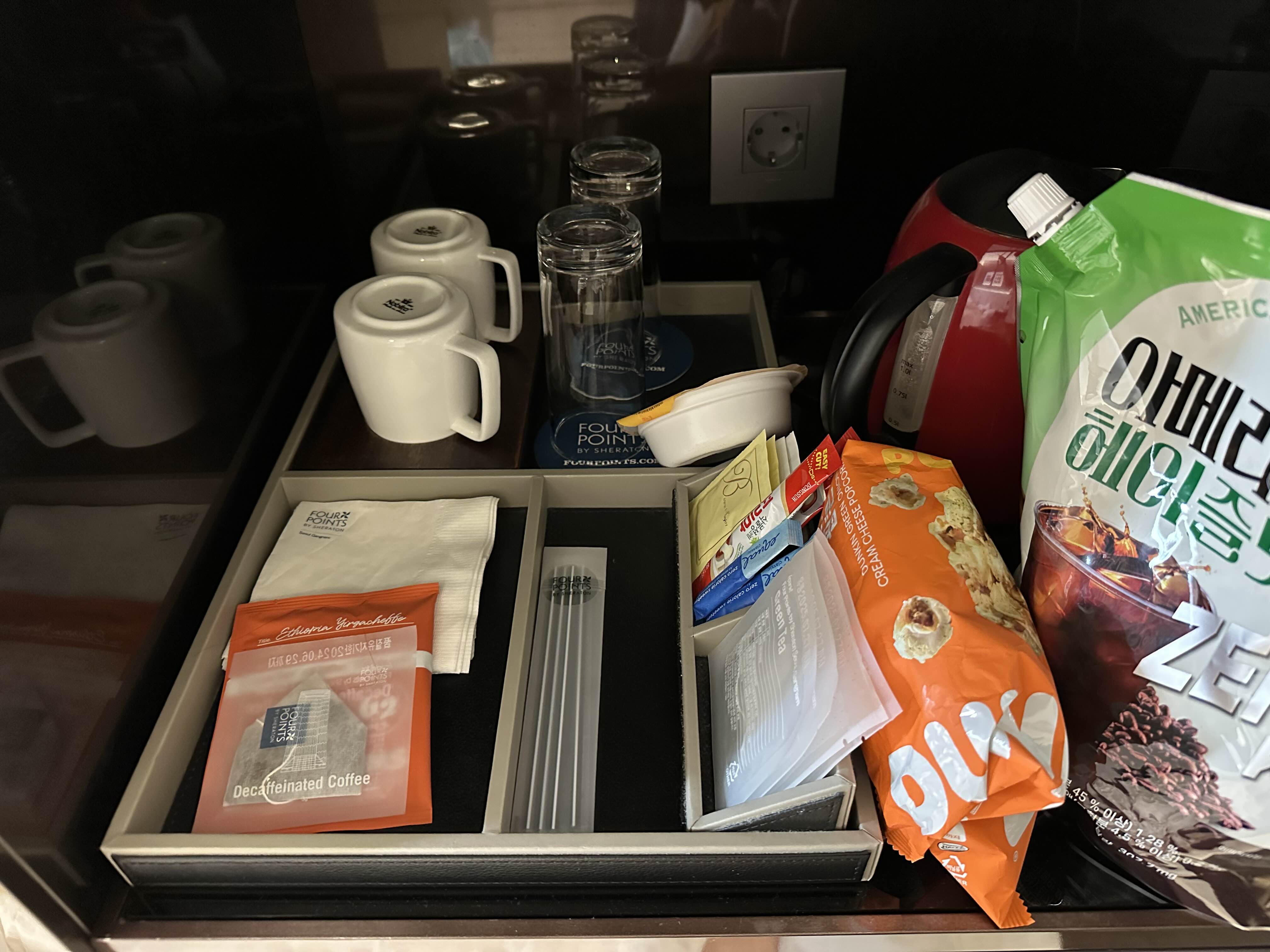 호텔가면 편의점가서 물 사야 하는 번거로움과 비용을 줄일 수 있는 포포인츠 바이 쉐라톤 강남 호텔입니다