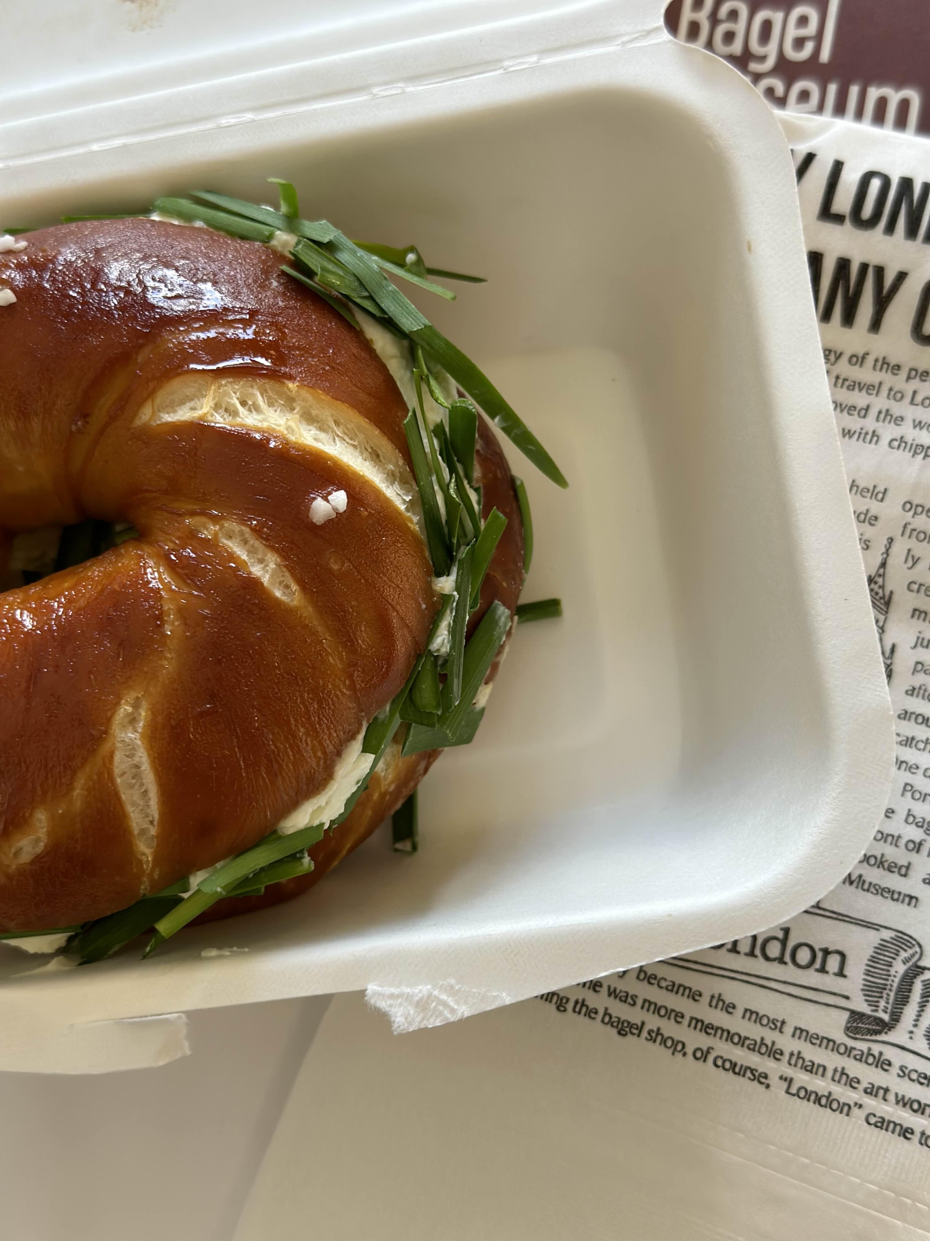 호텔 오자마자 런던 베이글 뮤지엄의 쪽파베이글을 먹어봤습니다