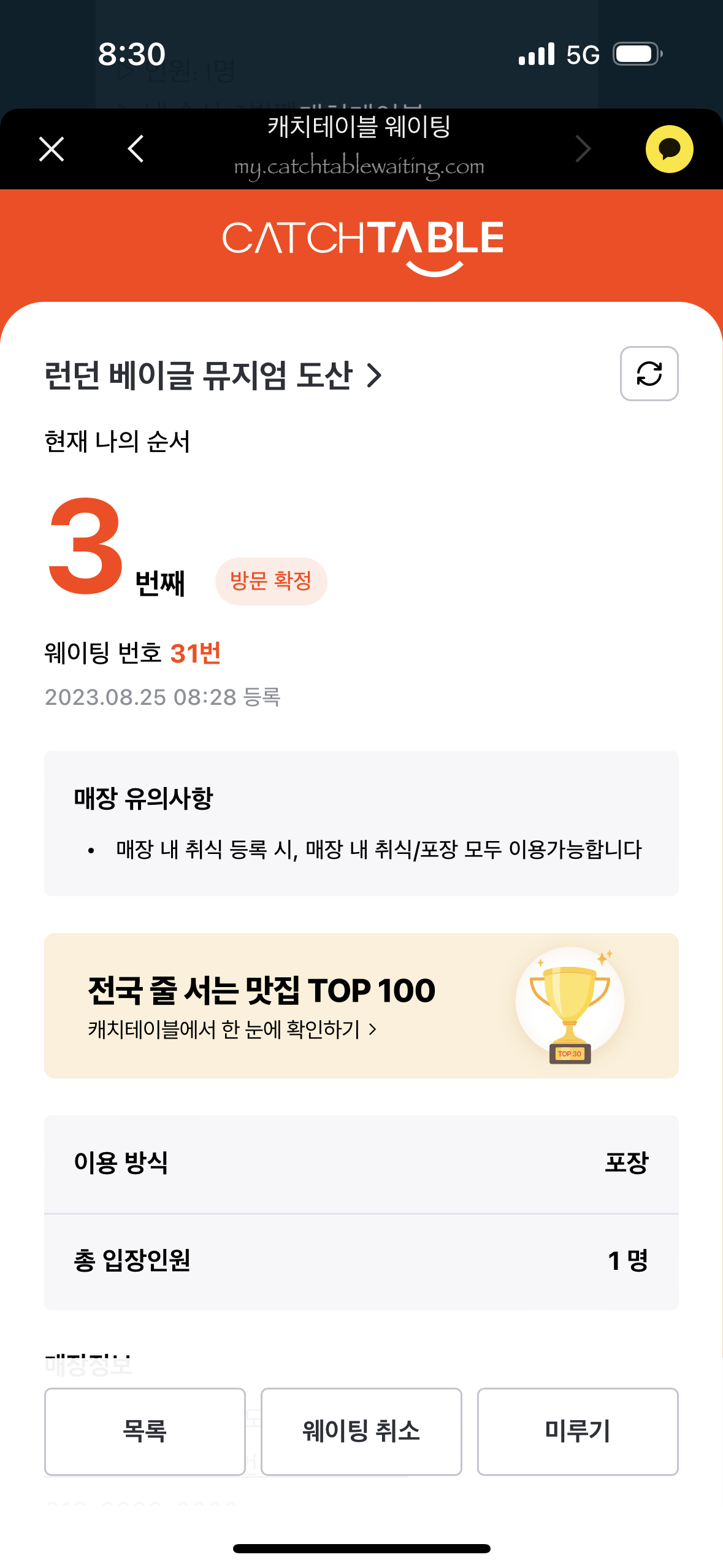 도착하니 포장 웨이팅 3번째로 줄어들었습니다