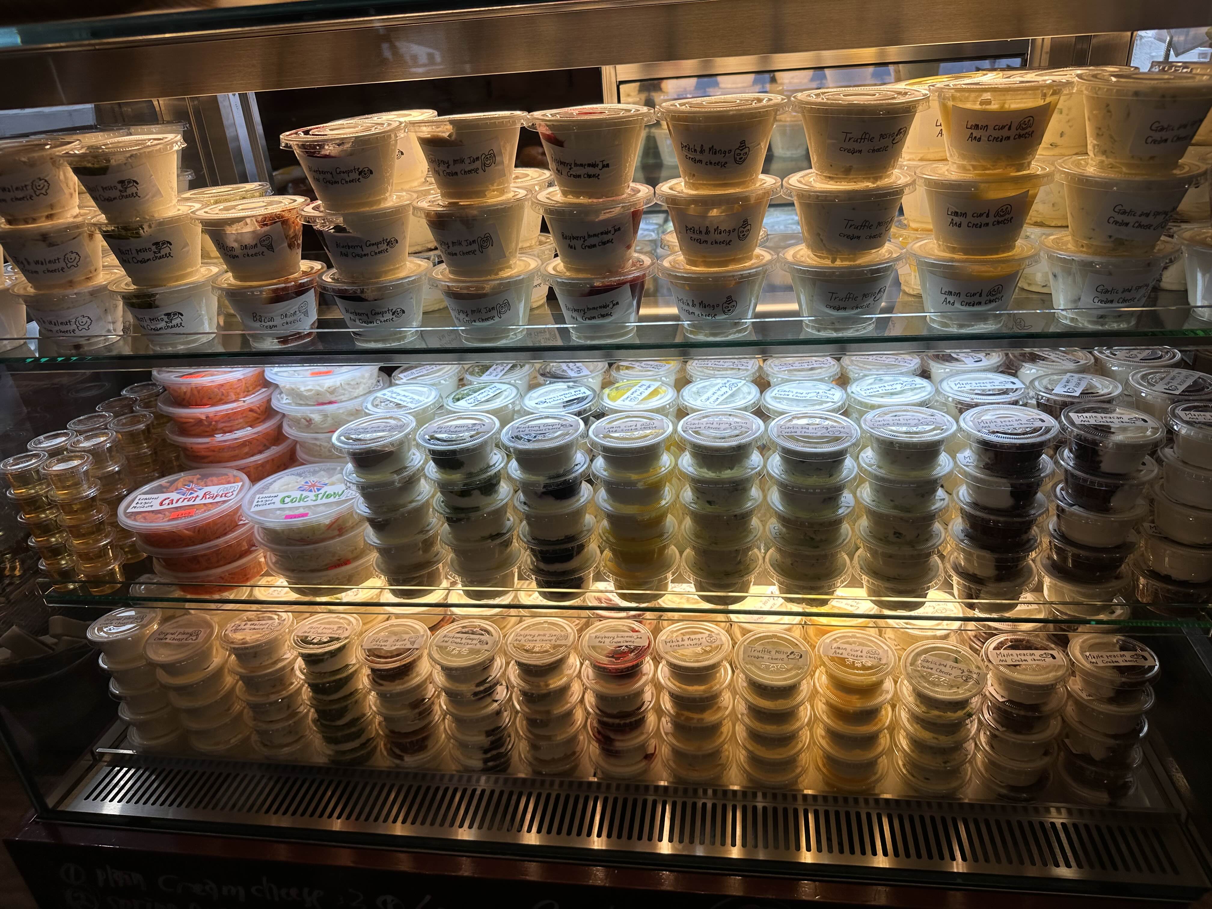 크림치즈도 산처럼 쌓여있는 런던 베이글 뮤지엄 도산점입니다