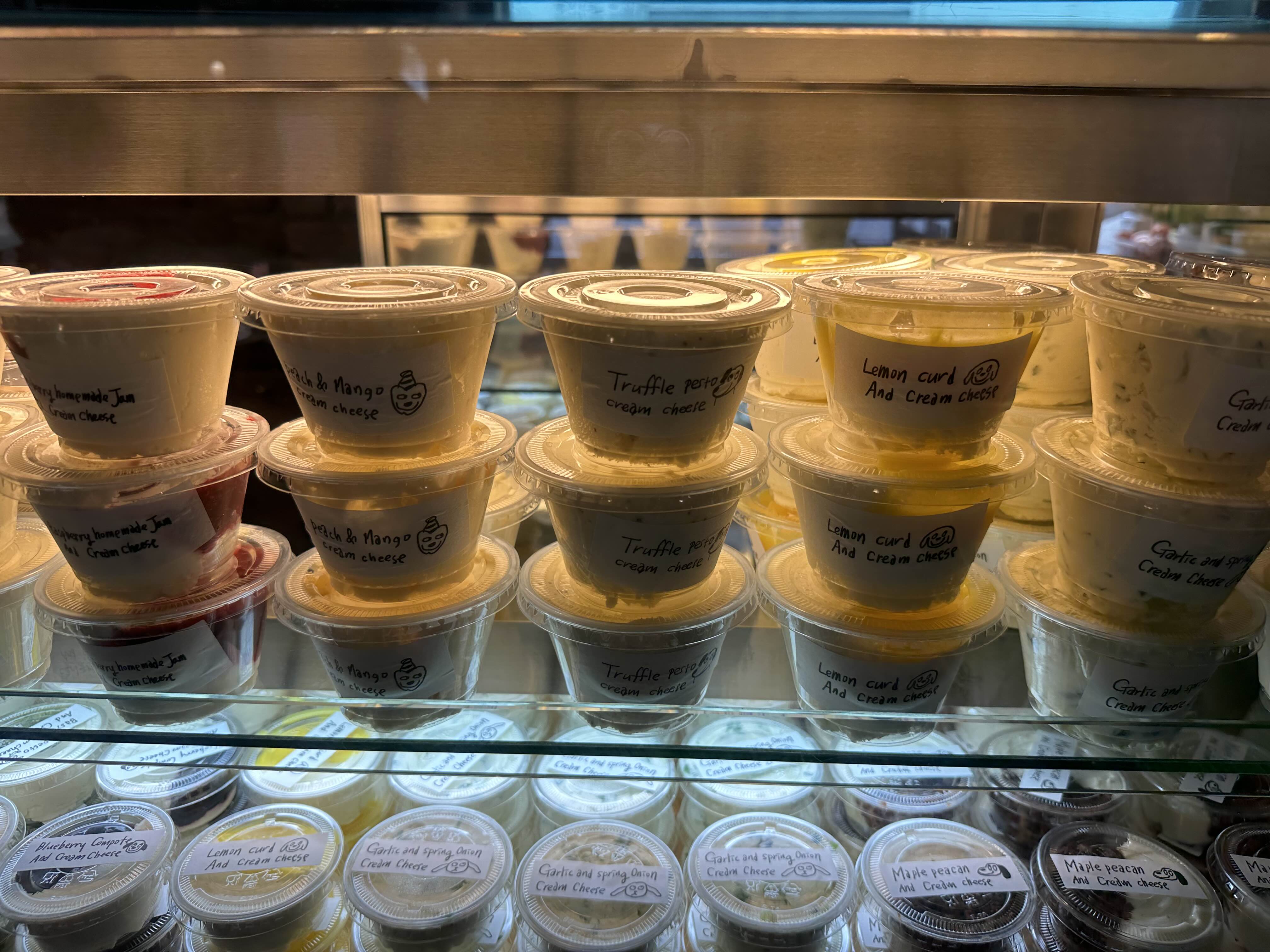 크림치즈도 산처럼 쌓여있는 런던 베이글 뮤지엄 도산점입니다