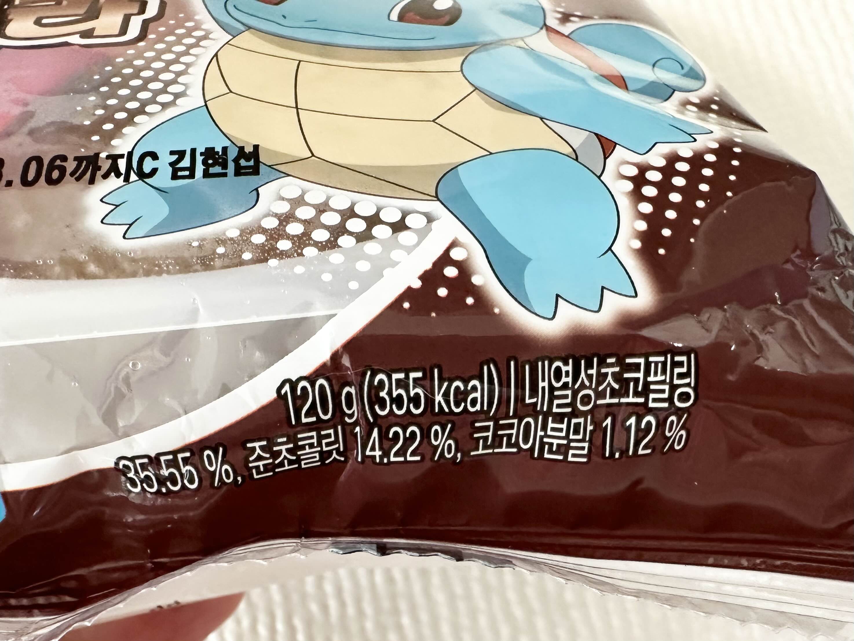 포켓몬 호빵 꼬부기 딥쇼콜라 칼로리는 120g에 355kcal입니다