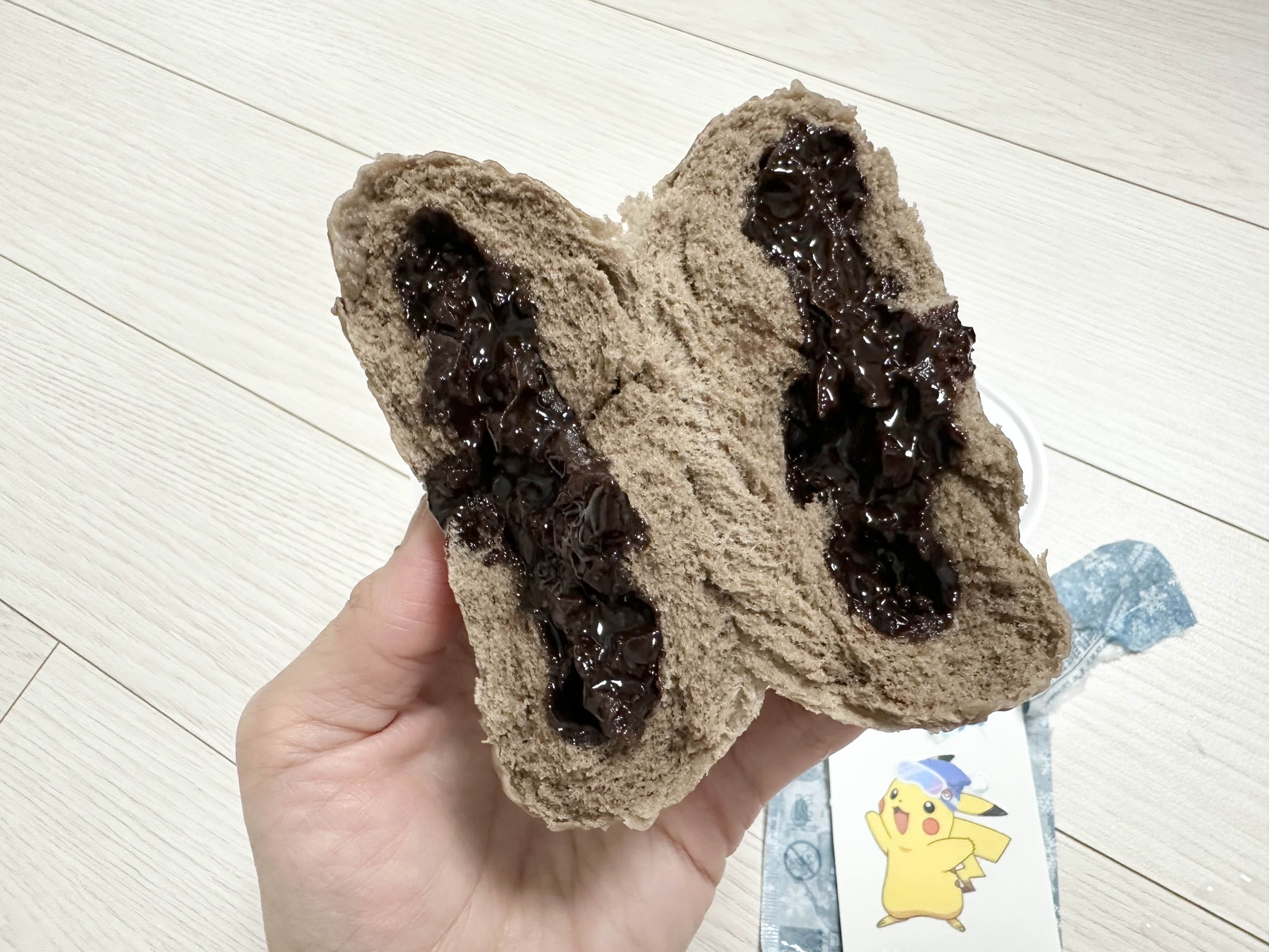 포켓몬 호빵 딥쇼콜라를 반 가르면 이렇게 초코가 듬-뿍 들어있습니다
