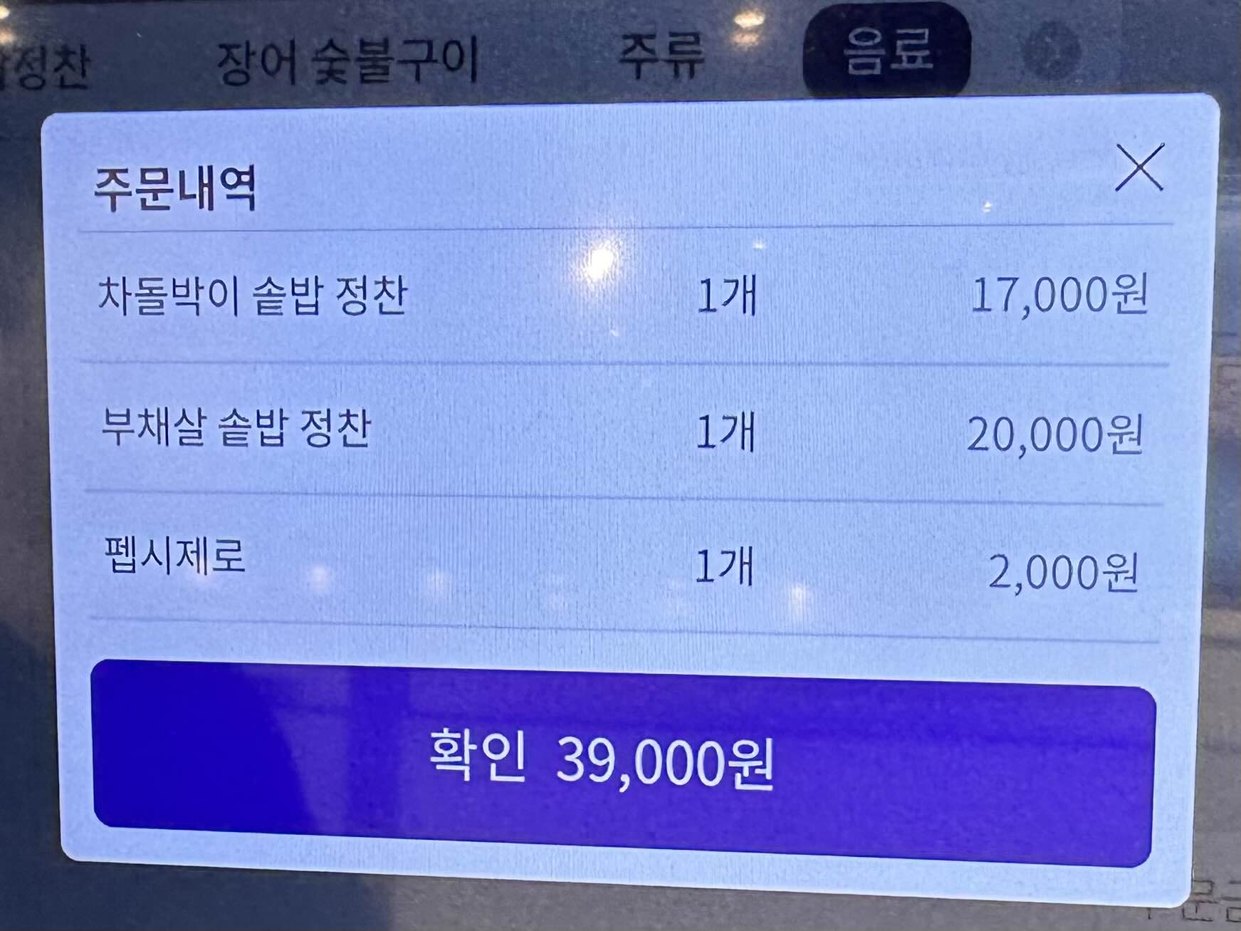 아쉬운대로 차돌박이 솥밥 정찬과 부채살 솥밥 정찬을 시켰습니다