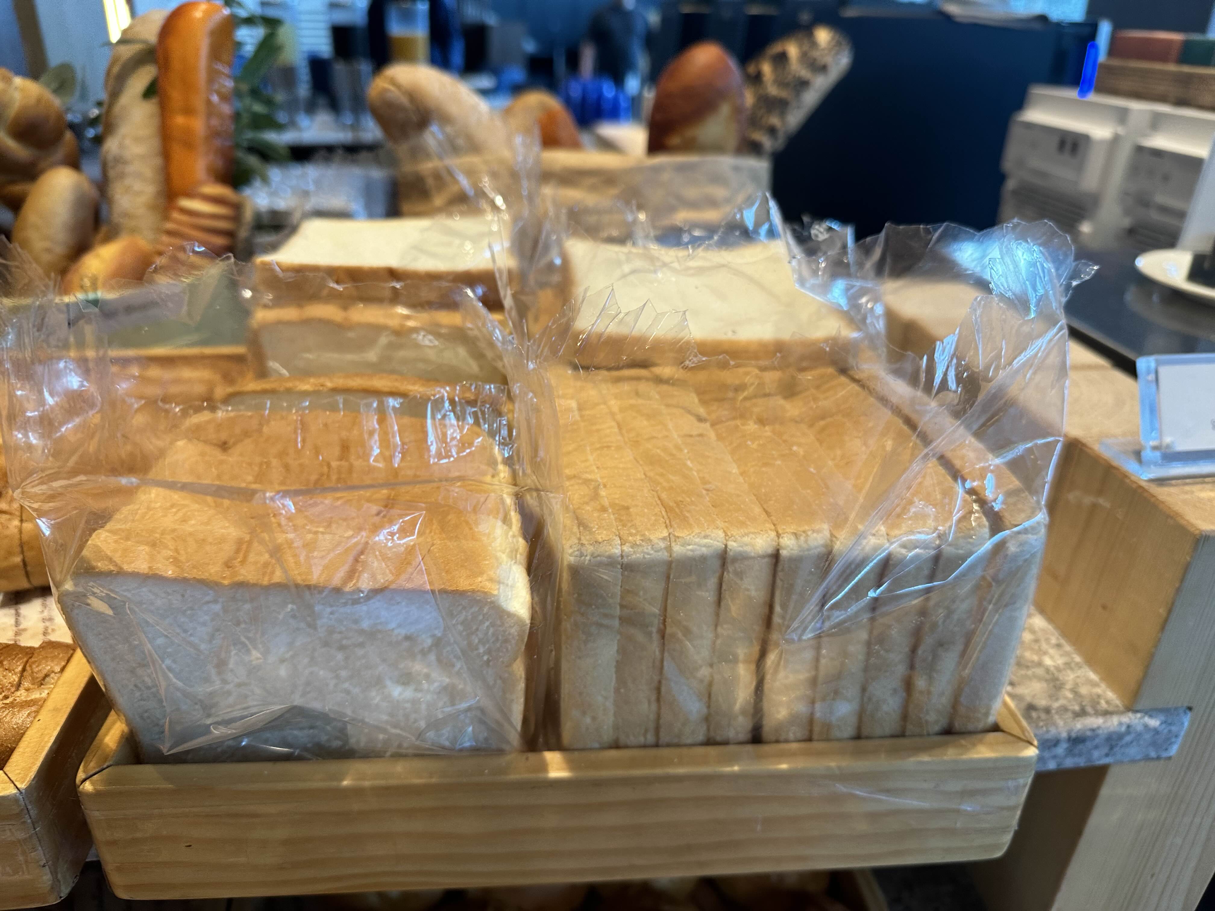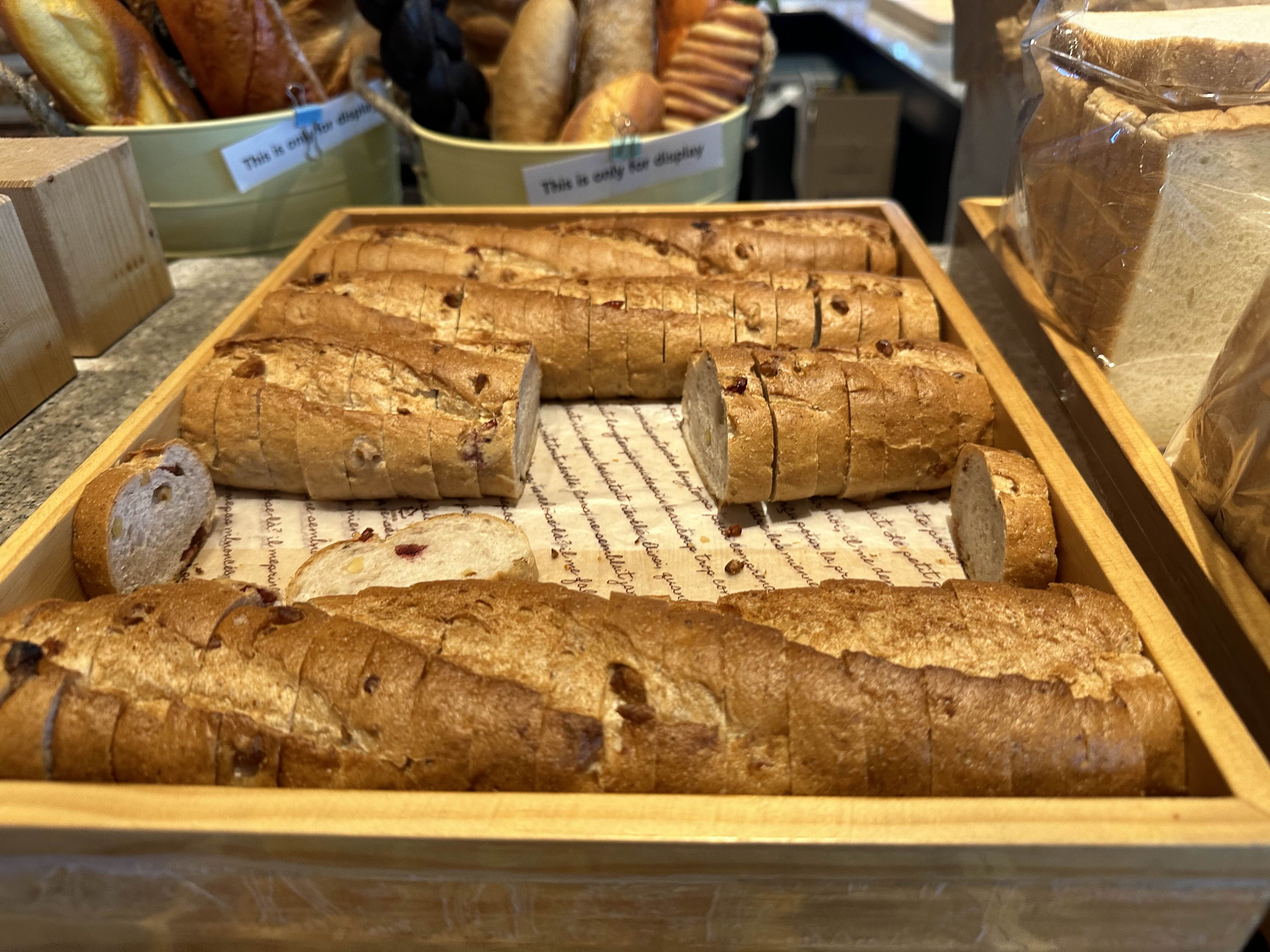 데니쉬,식빵, 바게트, 베이글 옆에는 버터도 준비되어 있습니다