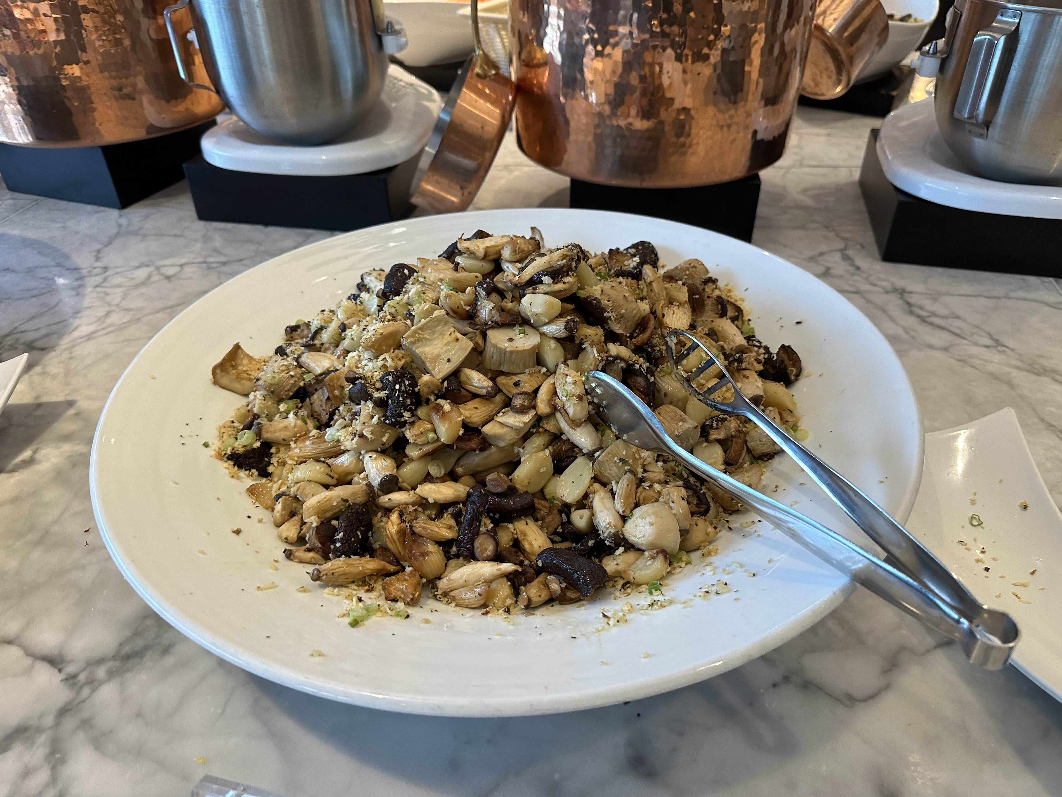 한 손가락에 볶은 버섯이라도 잡게 해줘야 제 접시에 음식을 마음 껏 담게 허락해줍니다