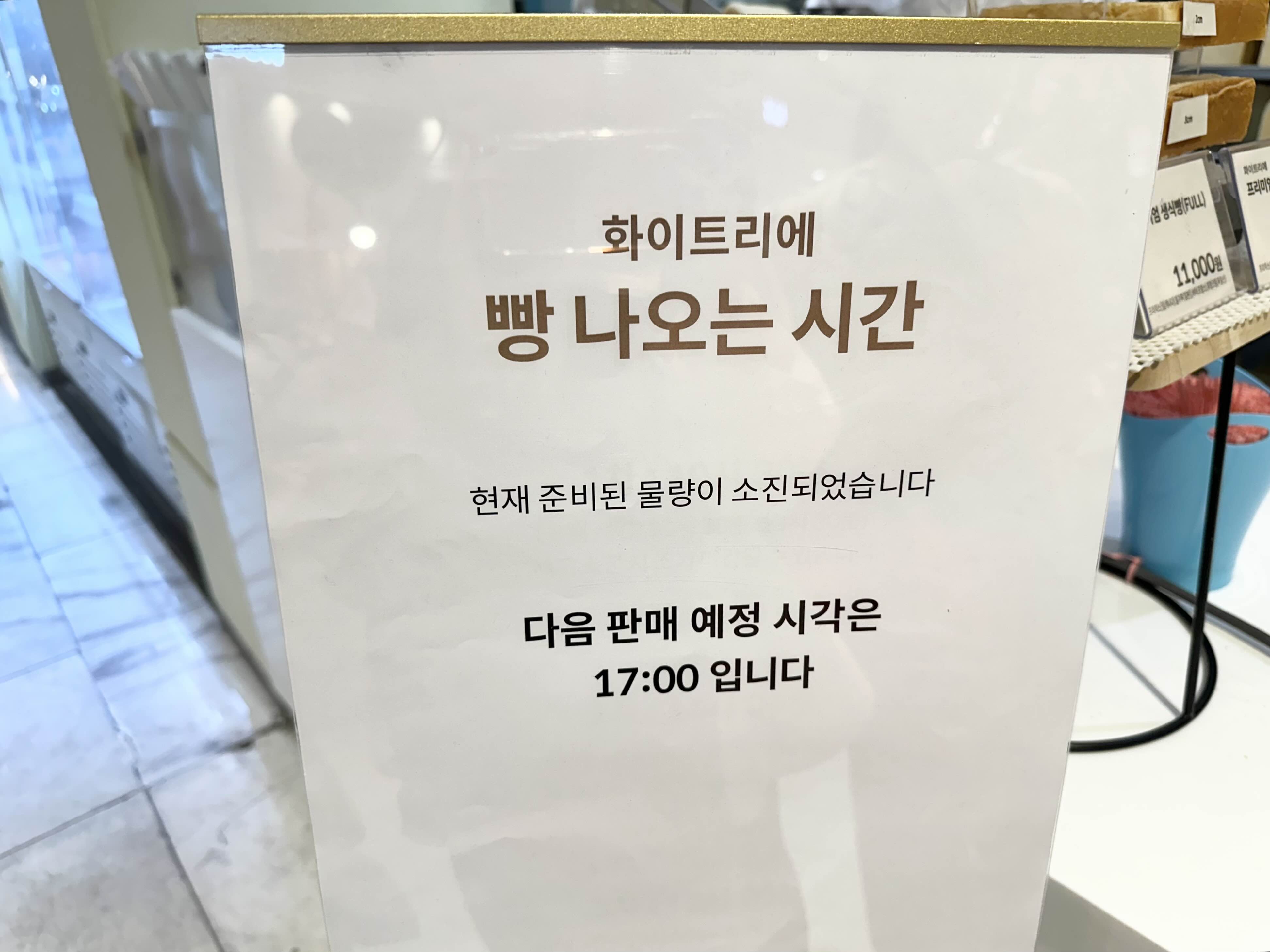 제가 갔을 때 화이트리에 빵 나오는 시간은