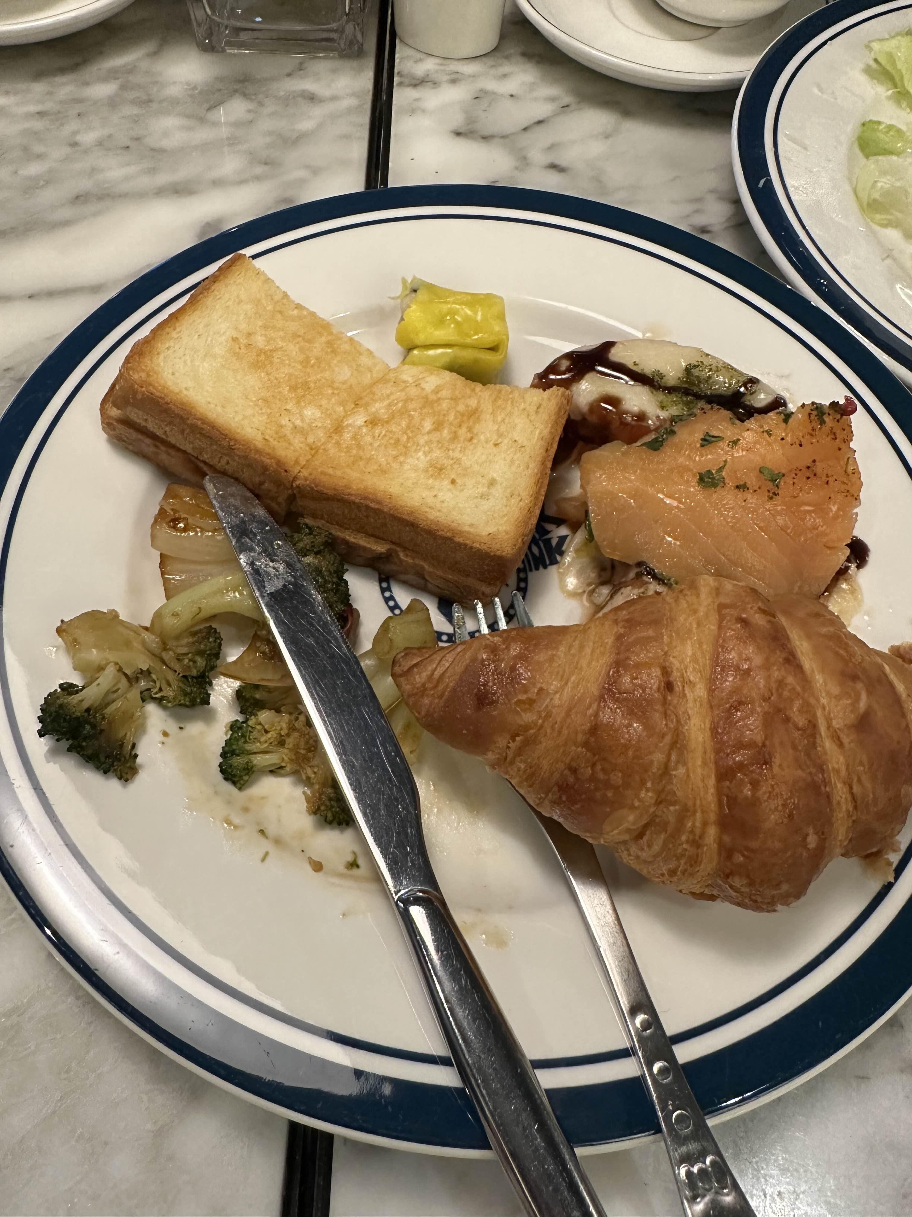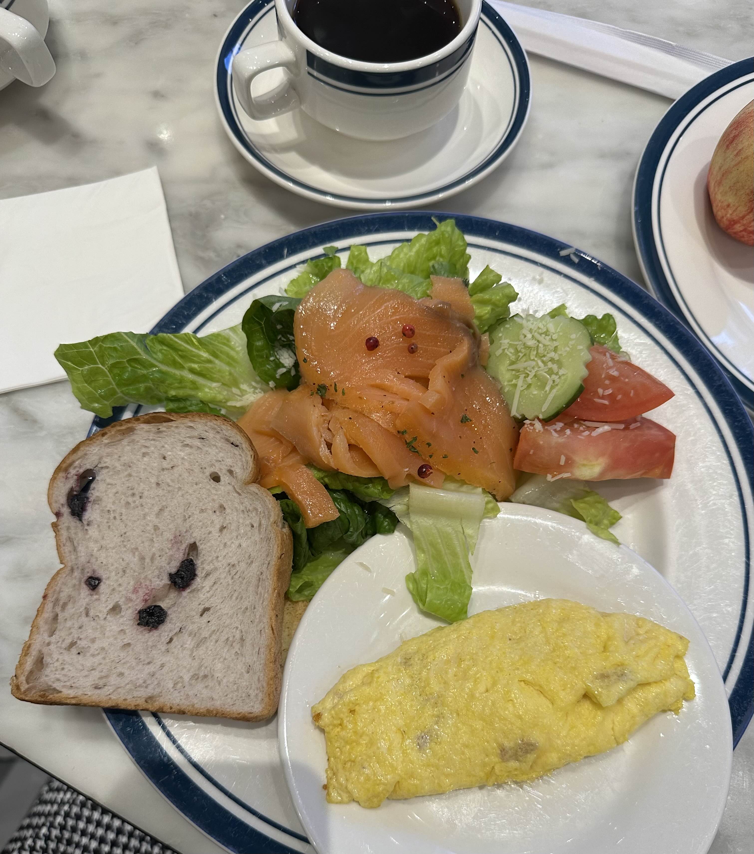 사이판 켄싱턴호텔 로리아 뷔페에서 3일 내내 먹었던 연어샐러드와 빵들 그리고 커피입니다