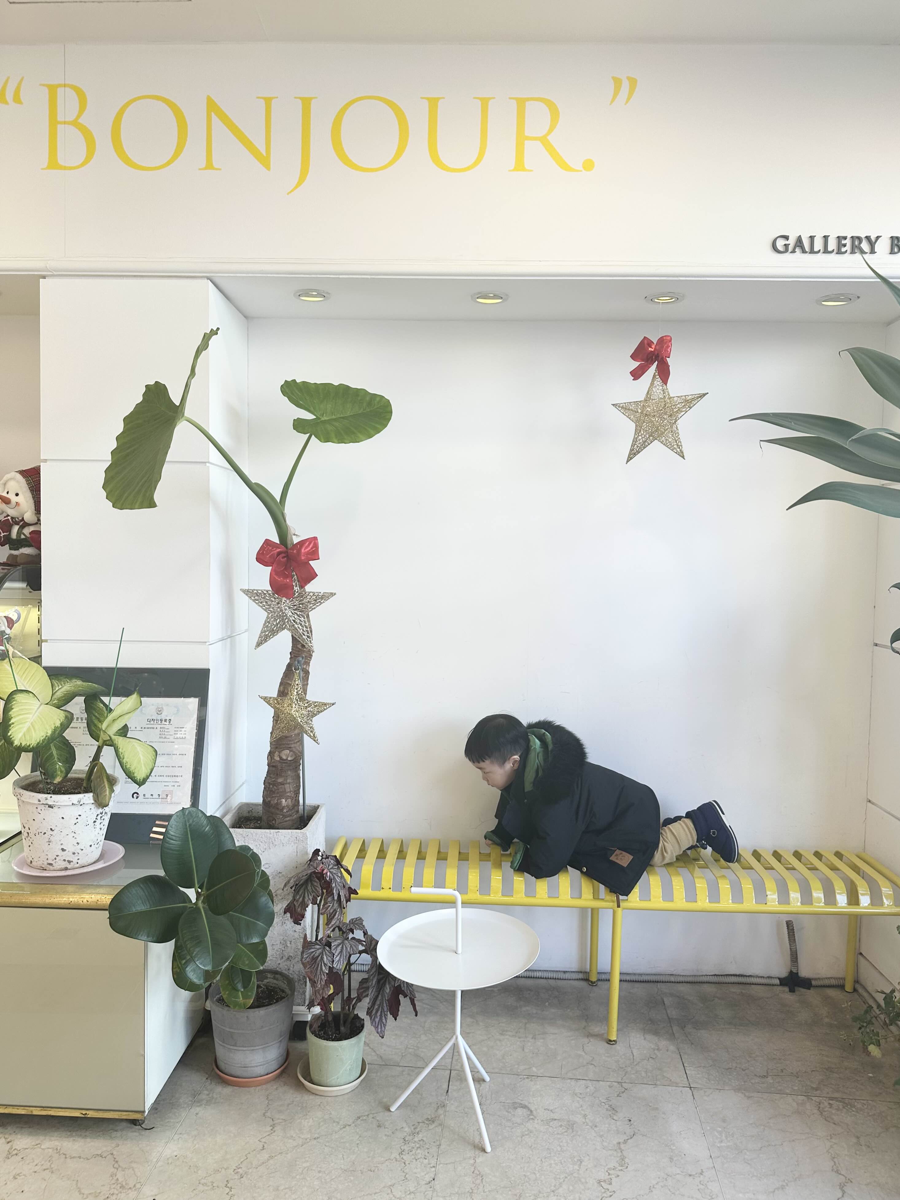 제가 빵 사진을 찍고 고르는 동안 여기저기 기웃거리며 시식도 하고 의자에도 올라가보던 아기