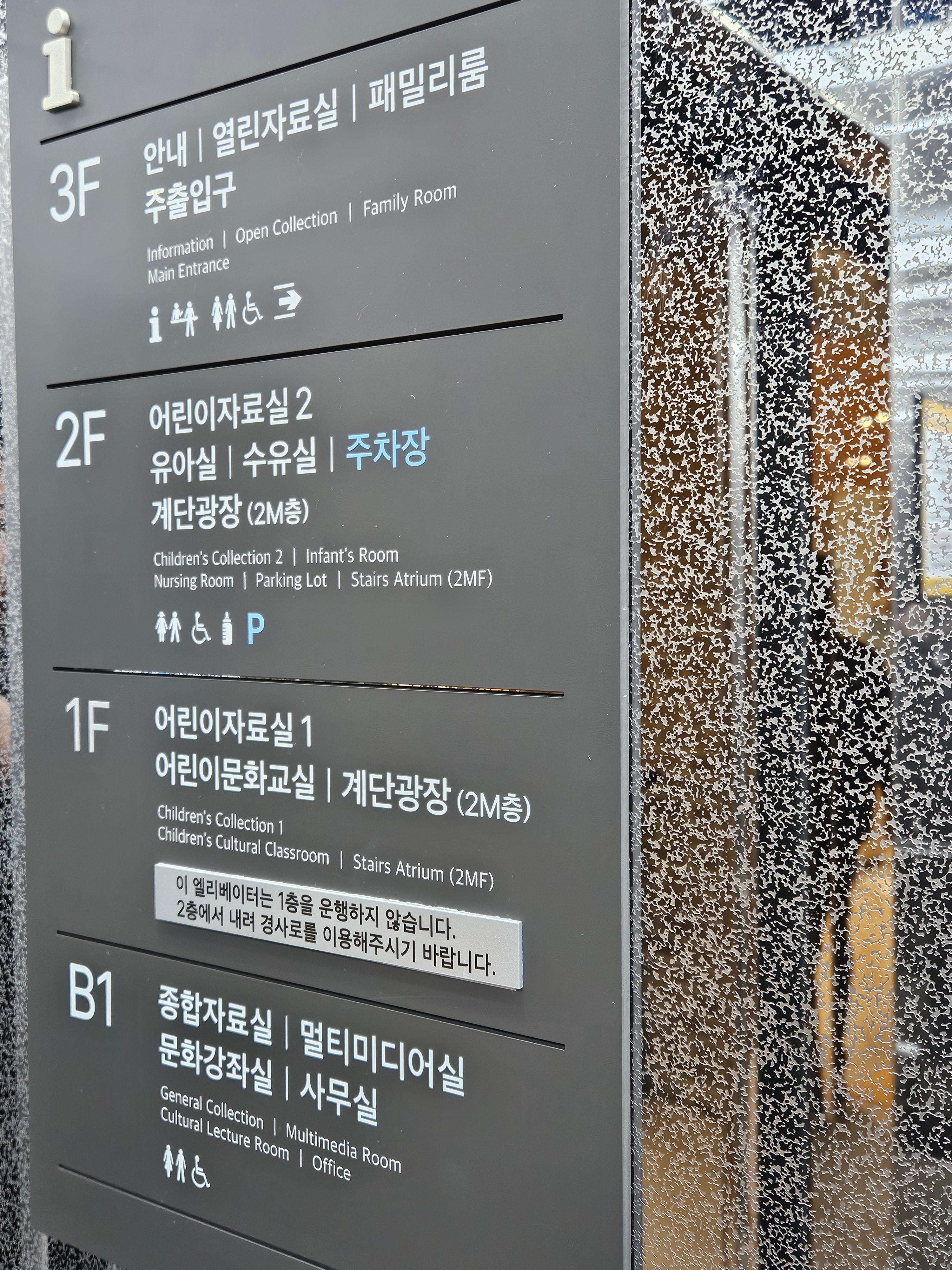 2층에 유아실 수유실까지 있고 3층엔 패밀리룸까지! 최신식 도서관 답군요