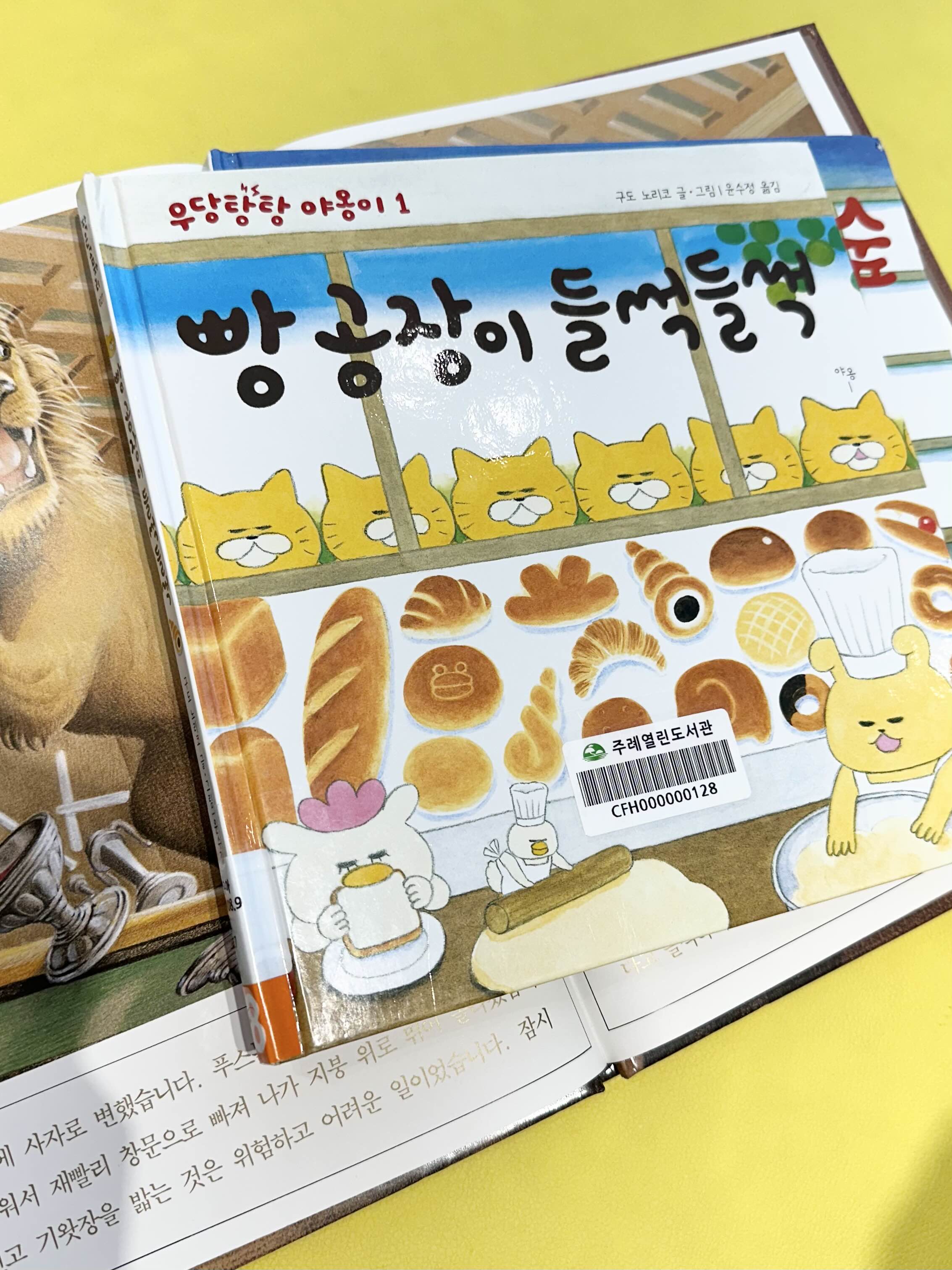 아직 책을 읽는다기보다 그림을 보는 아기라서 여기선 자기가 좋아하는 빵책을 보았습니다