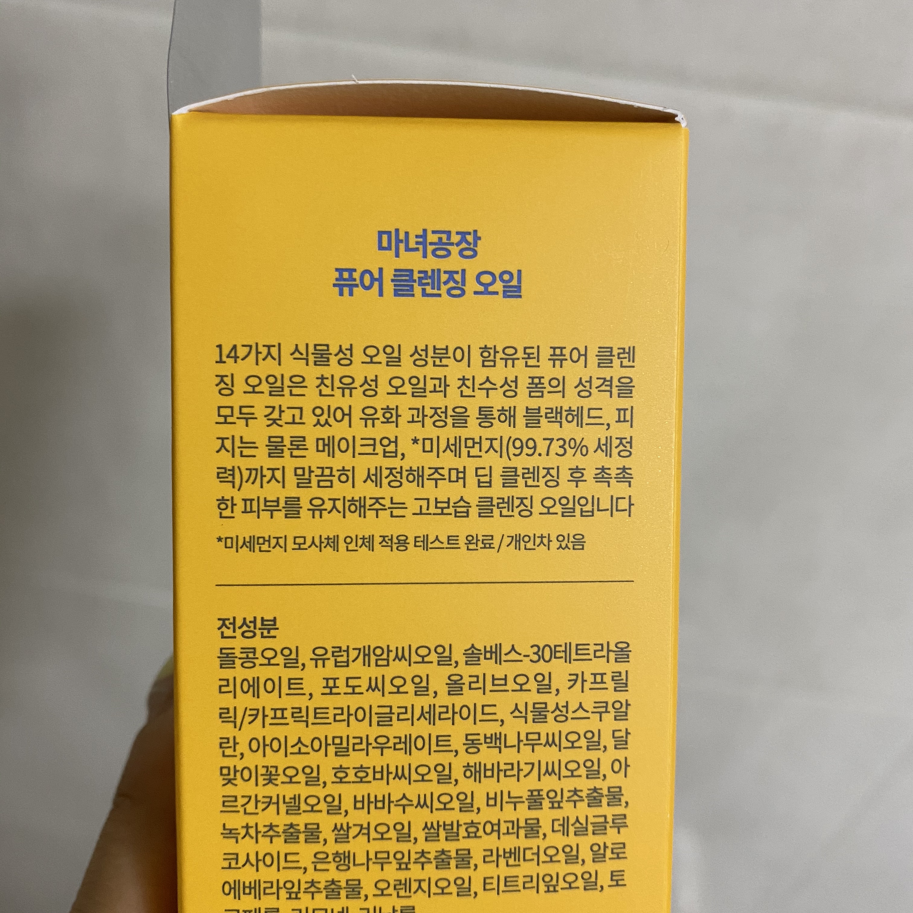마녀공장(ma:nyo)의 퓨어클렌징오일은 미세먼지 세정력이 무려 99%라는 점 이 제 눈길을 사로잡았는데 정말 블랙헤드 사라지는지 한번 시험해봅시다.