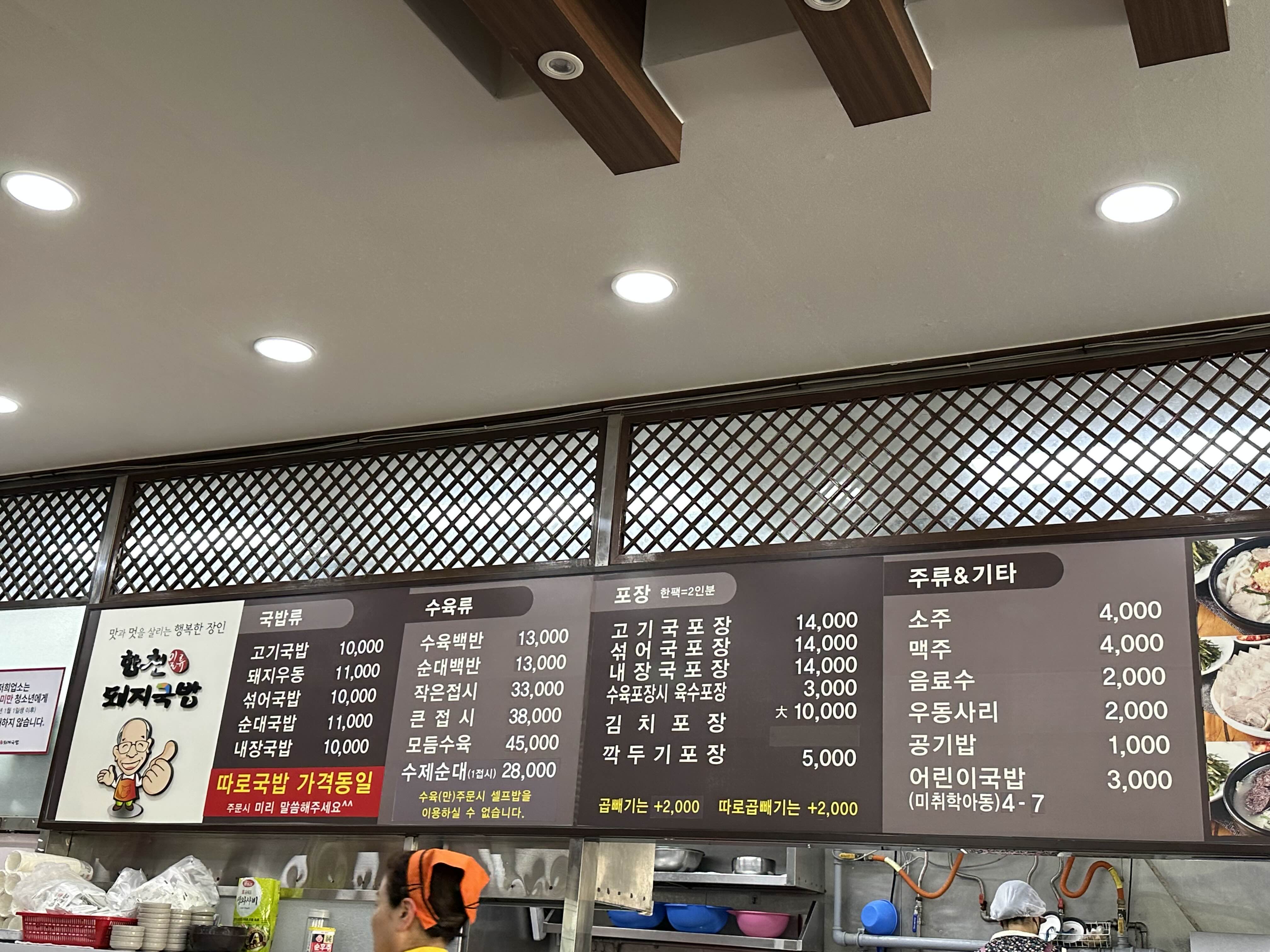 저희가 먹었던 부산 사상 합천돼지국밥 가격은 국밥 만원, 돼지우동은 천원 비싼 만천원이었습니다