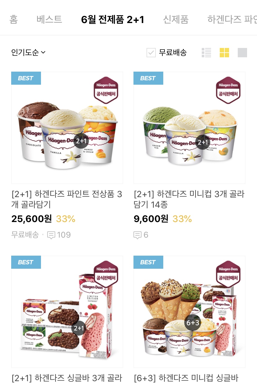 6월 모든 편의점에서 하겐다즈 2+1 행사중 이니