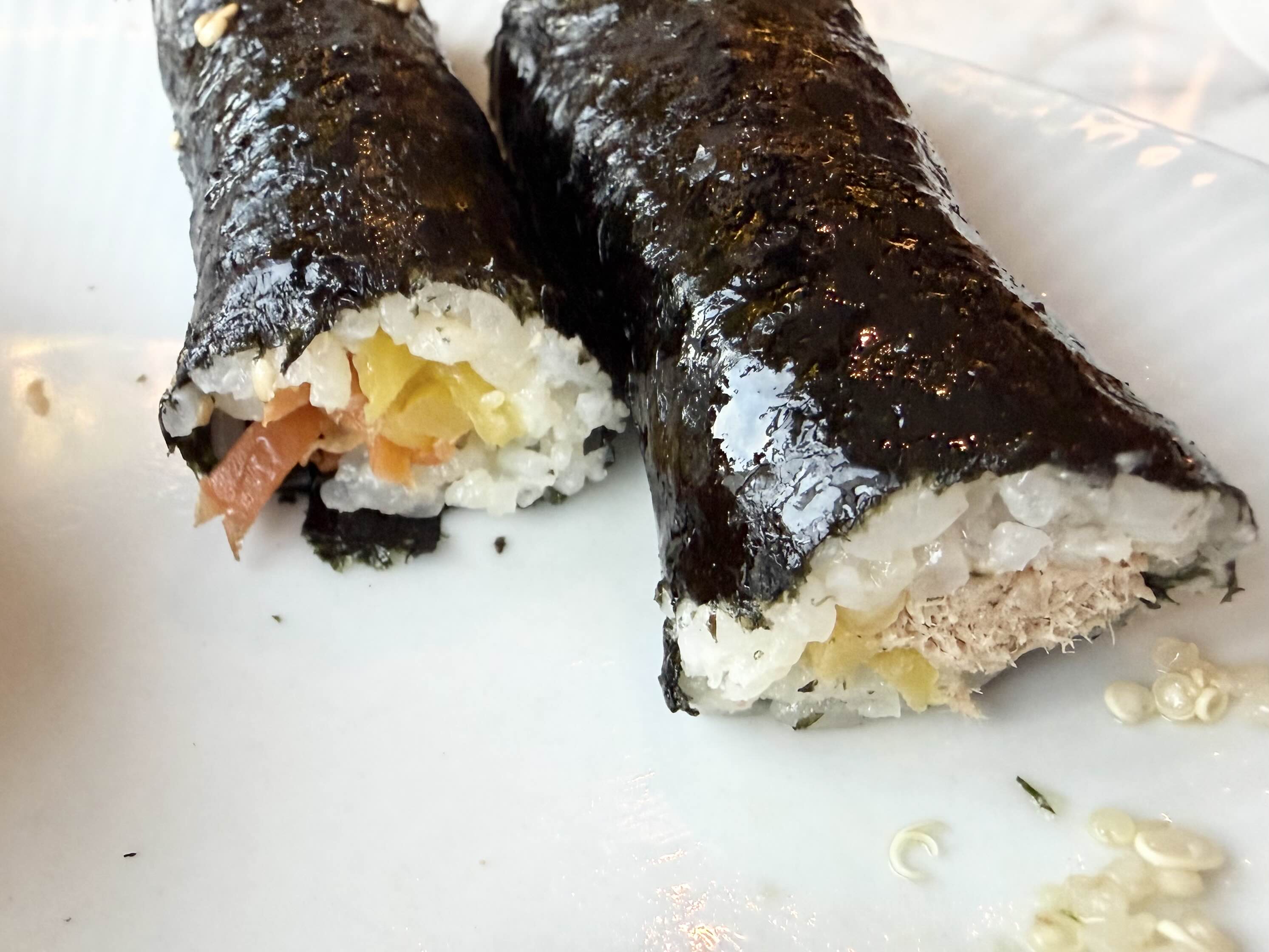 아기에게 주기 좋은 꼬마김밥은 참치와 야채 두가지 종류가 있습니다