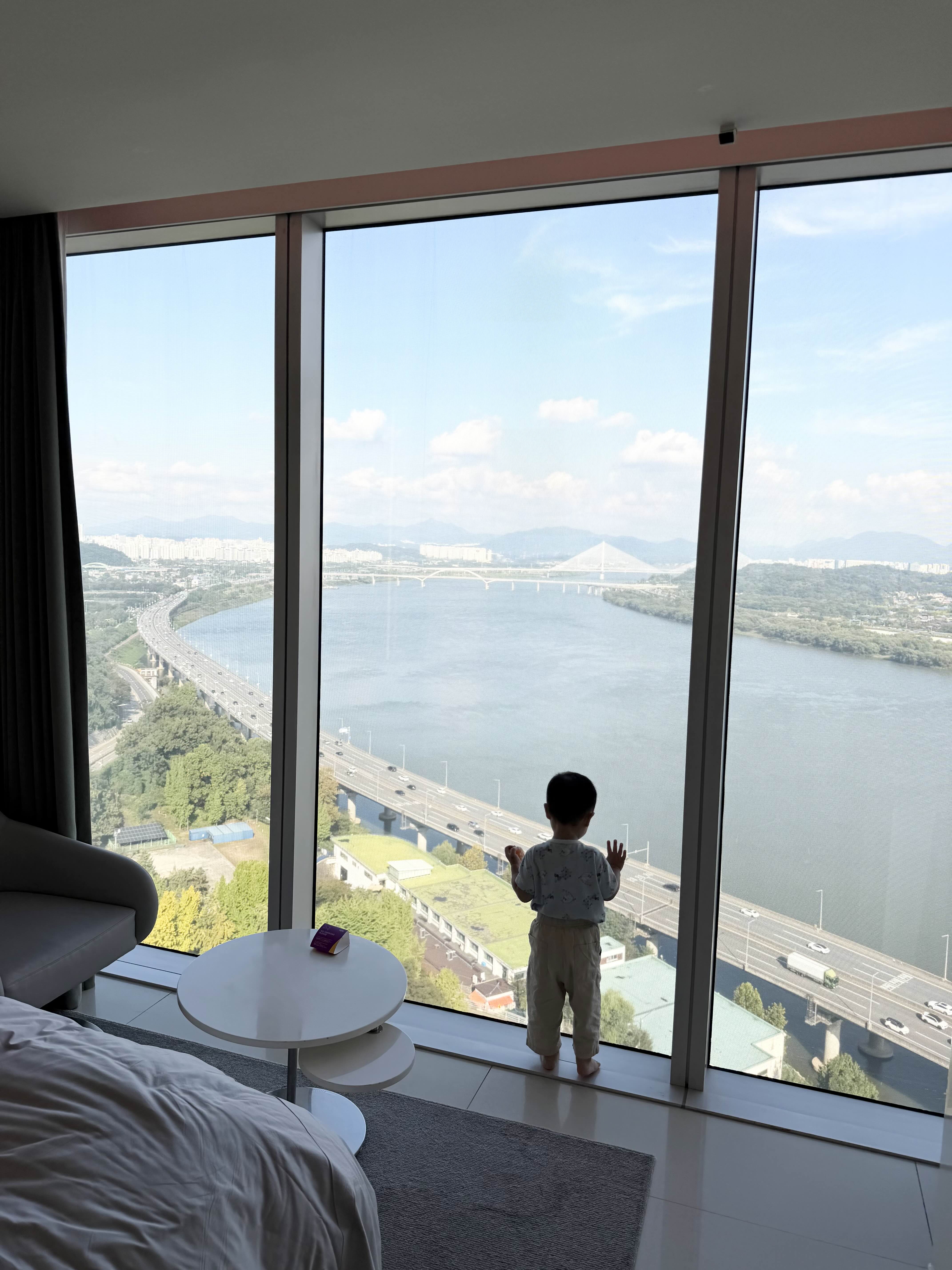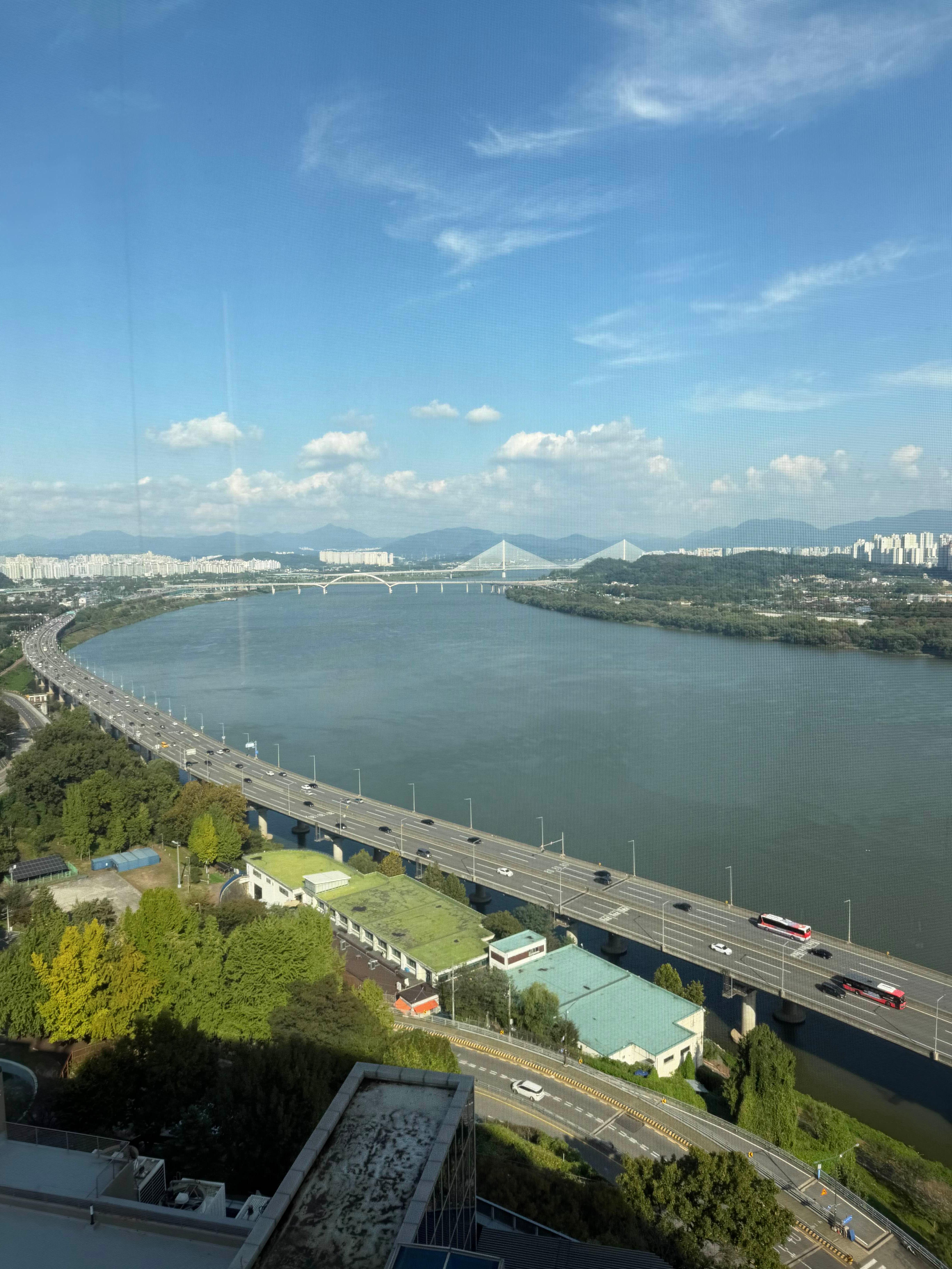 전 날 압구정 모 호텔에 묵었던 감흥이 기억나지 않을 정도로 비교불가, 압도적으로 아름다웠던 워커힐 비스타 서울 의 한강 리버뷰입니다.