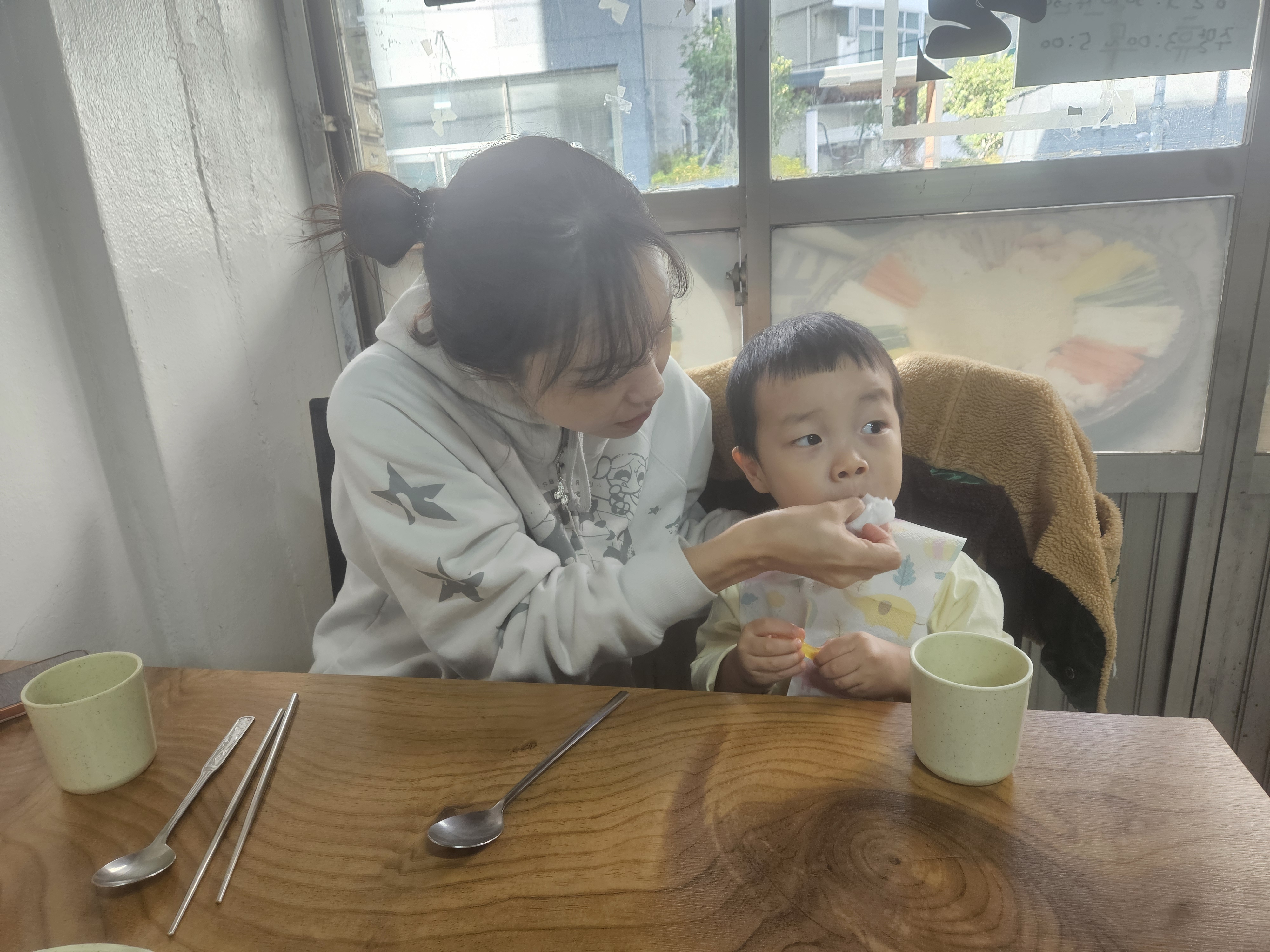 소스맛을 한번 보더니 소스 뭍은 탕수육만 골라 먹는 모습에 또 한번 웃었구요
