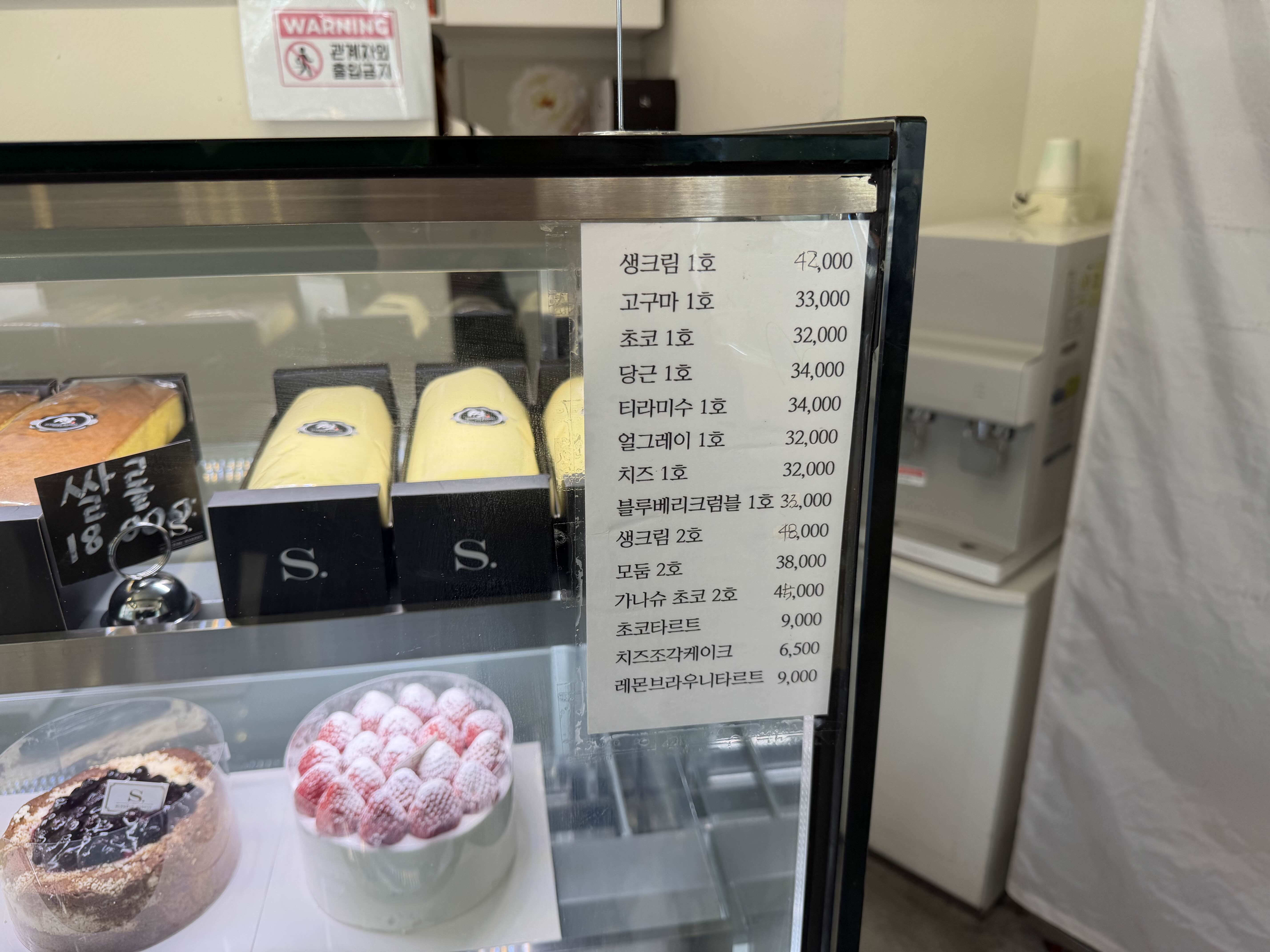 케이크 가격은 붙여진 표를 참고하시면 되겠습니다