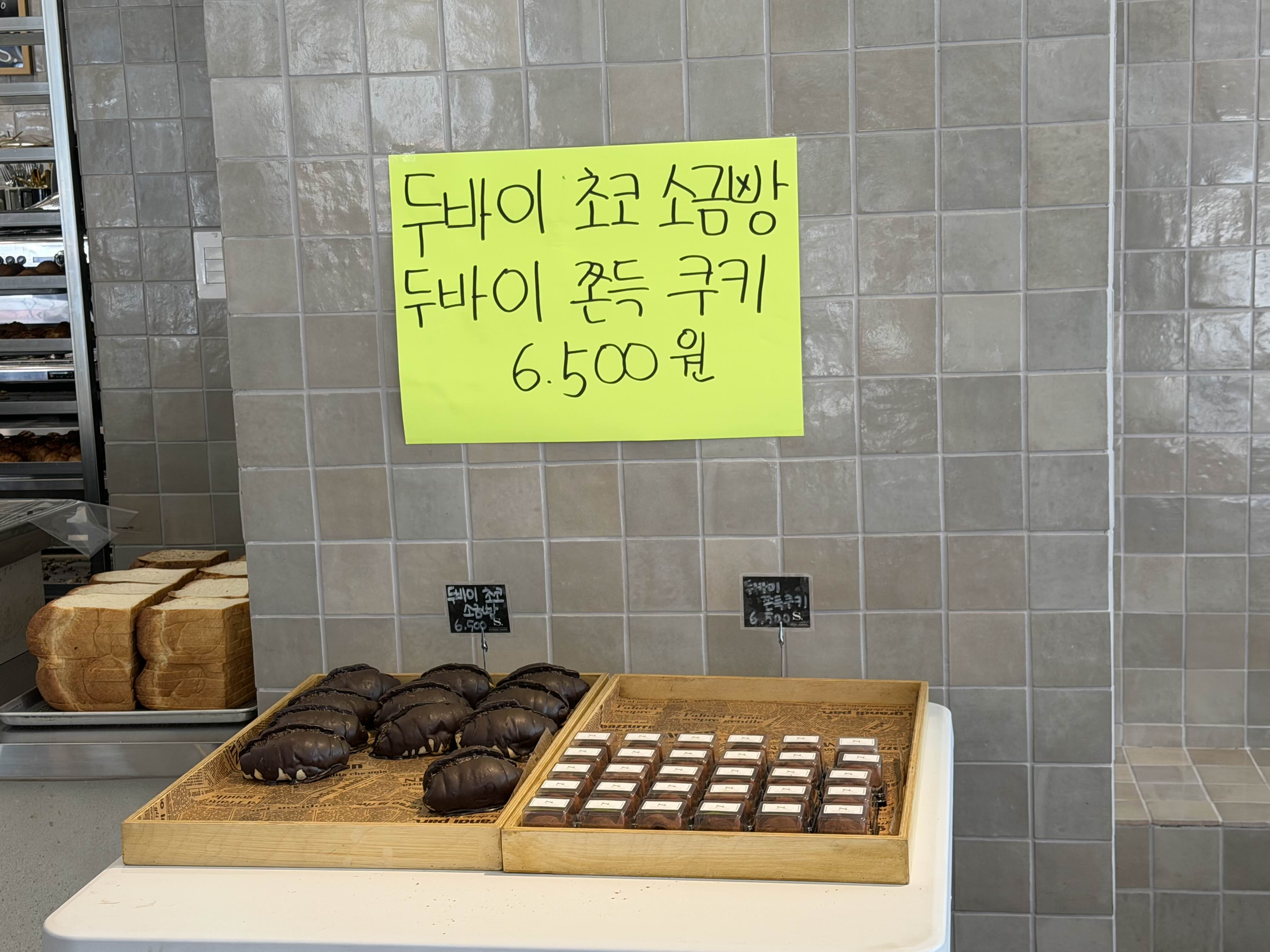 쉬프렘 베이커리에서는 요즘 핫한 두바이소금빵, 두바이 쫀득쿠키도 팔고 있었습니다.