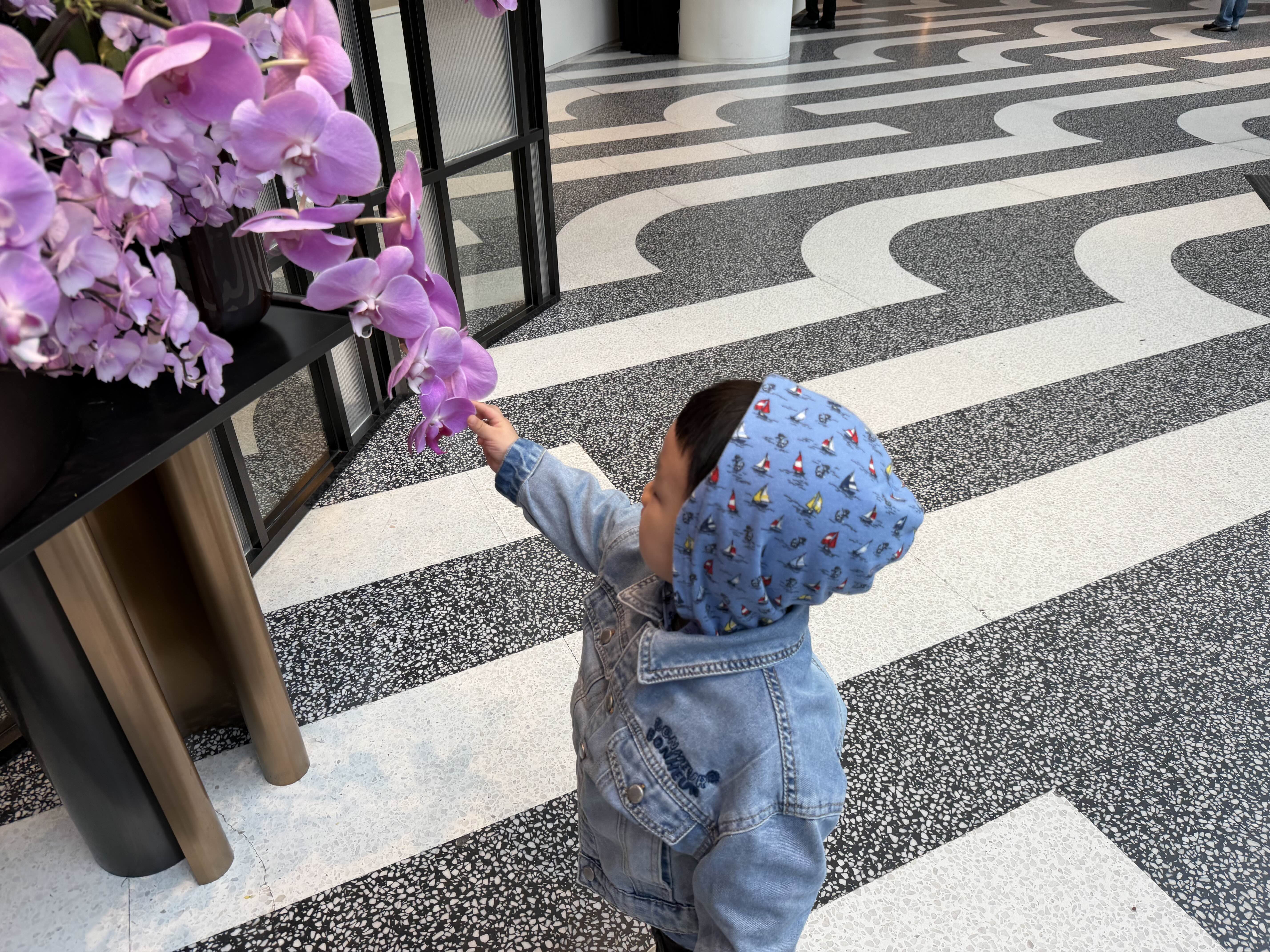 가짜 꽃을 열심히 보고 있는 아기^^
