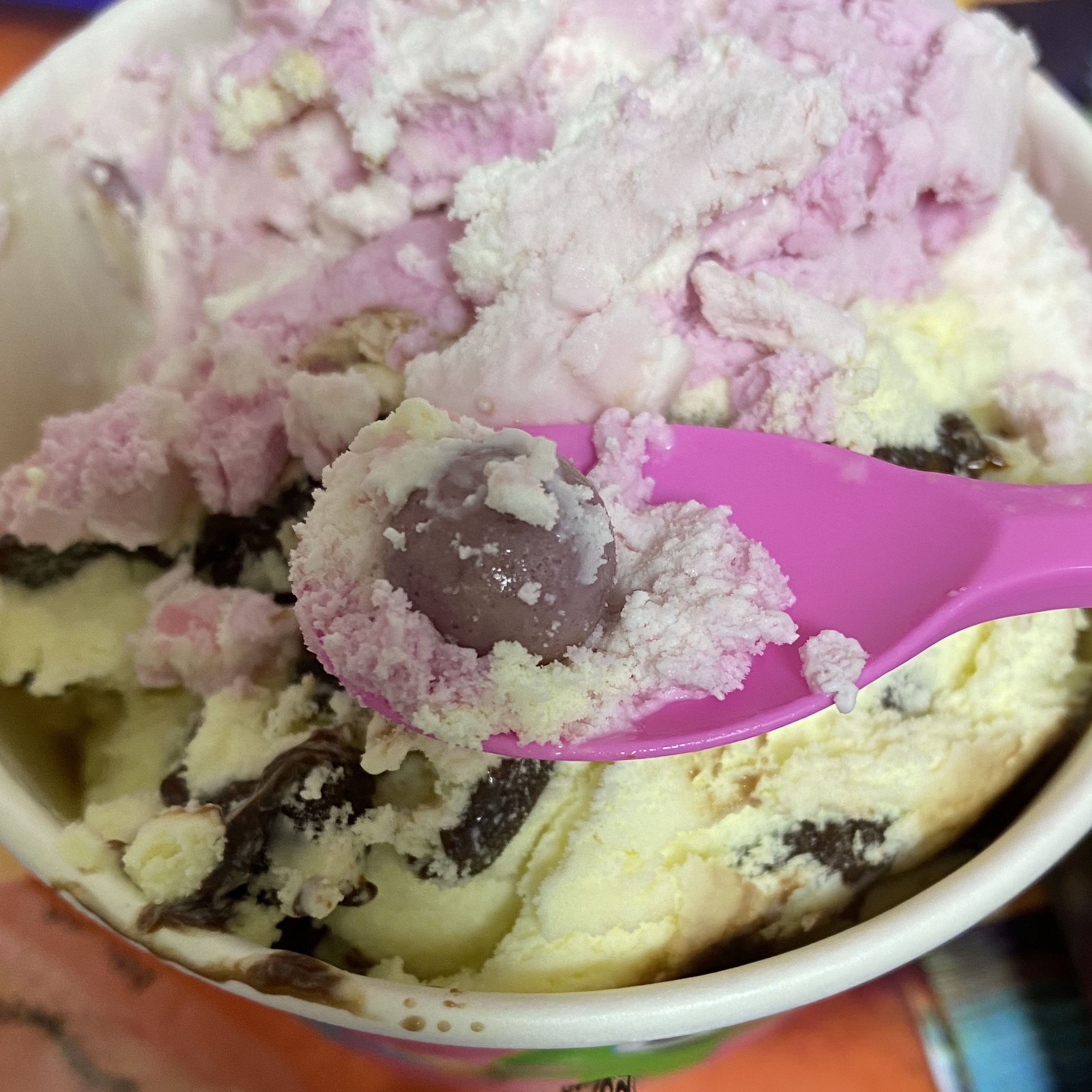 배스킨라빈스 엄마는외계인이나 아빠는딸바봉에 들어있는 저 초코볼은 시중에 왜 안파는것일까요? 비슷한 초코볼을 많이 먹어봐도 오리지날은 못따라갑니다.