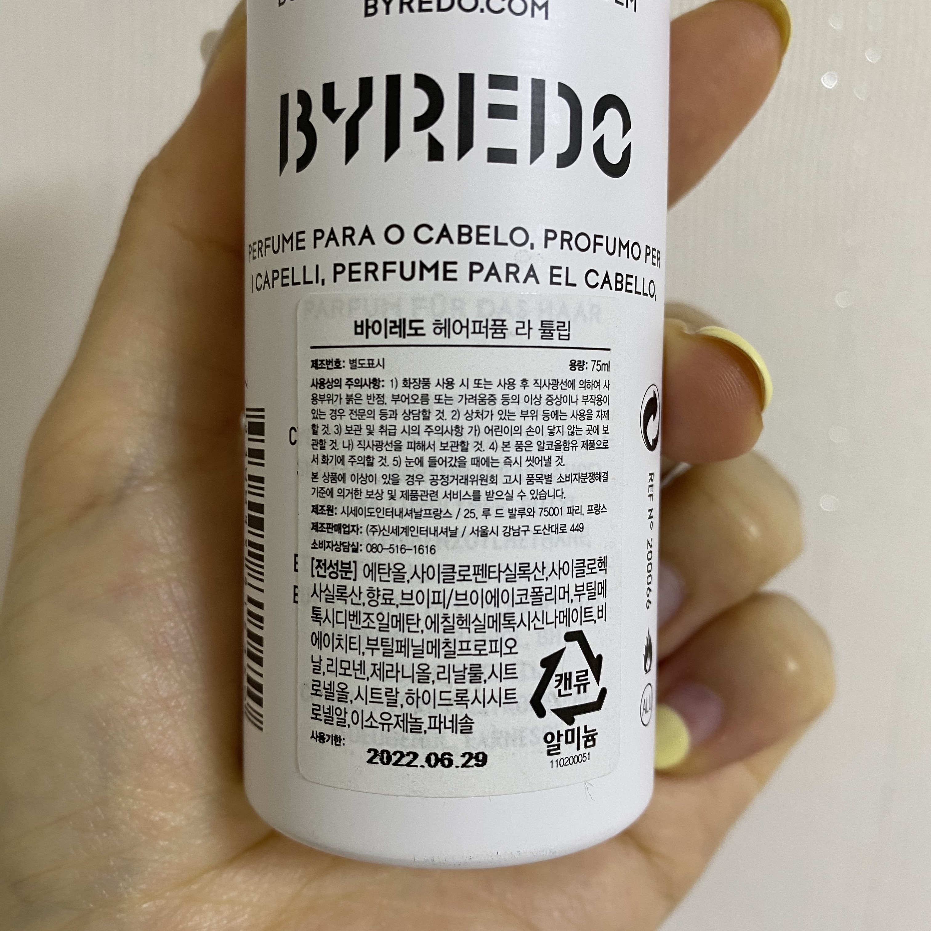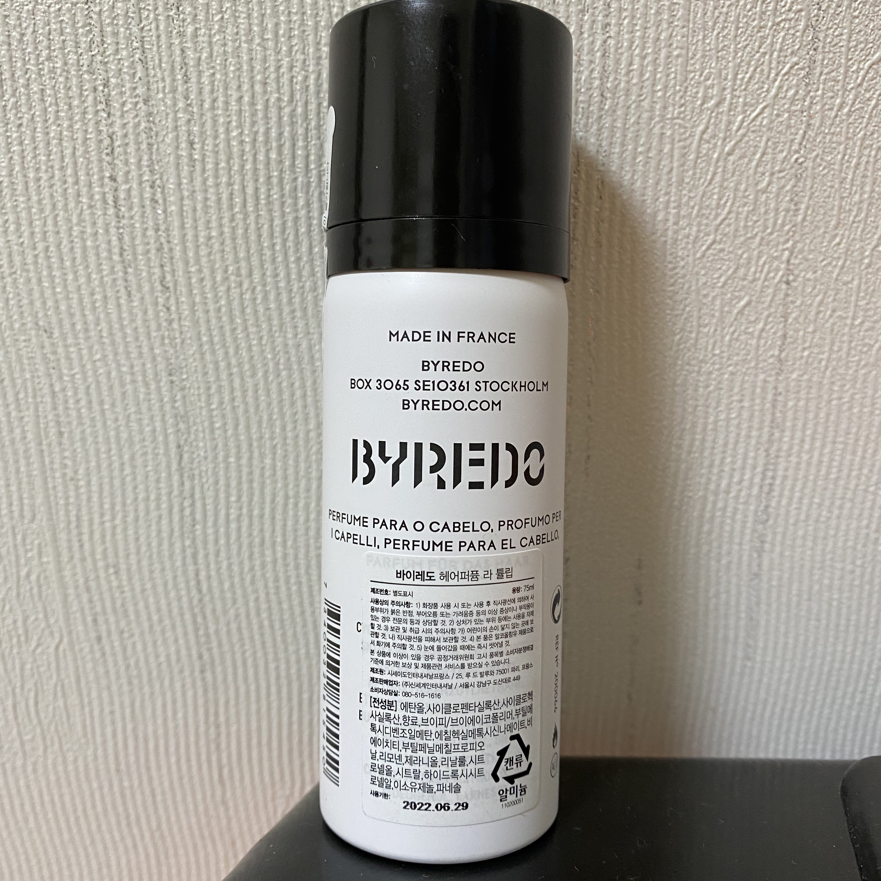 바이레도 헤어퍼퓸 라 튤립의 유통기한은 2년정도입니다.