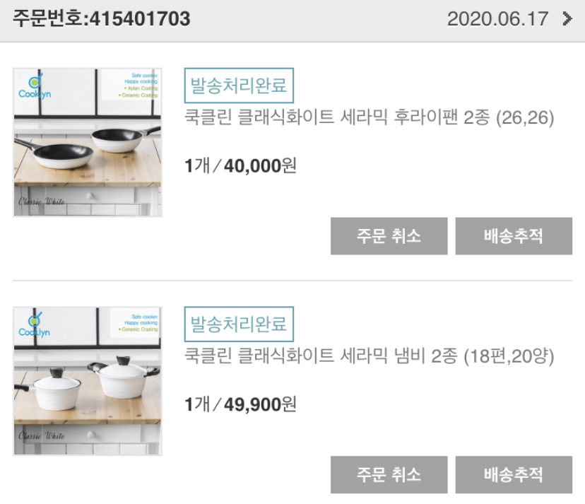 저는 쿡클린 클래식화이트 세라믹 후라이팬 2종(26사이즈) 과