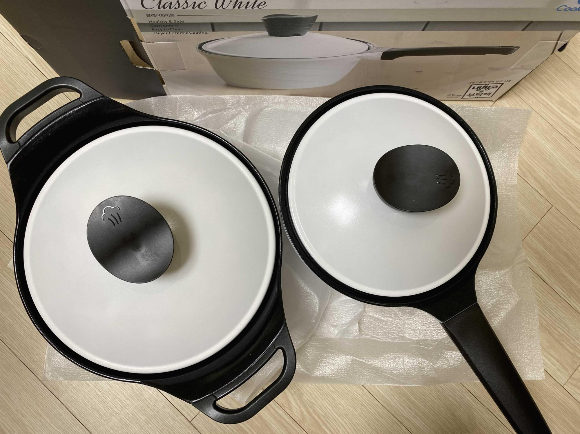 쿡클린 클래식화이트세라믹 냄비 2종(18편,20양) 두 세트를 주문하였습니다.