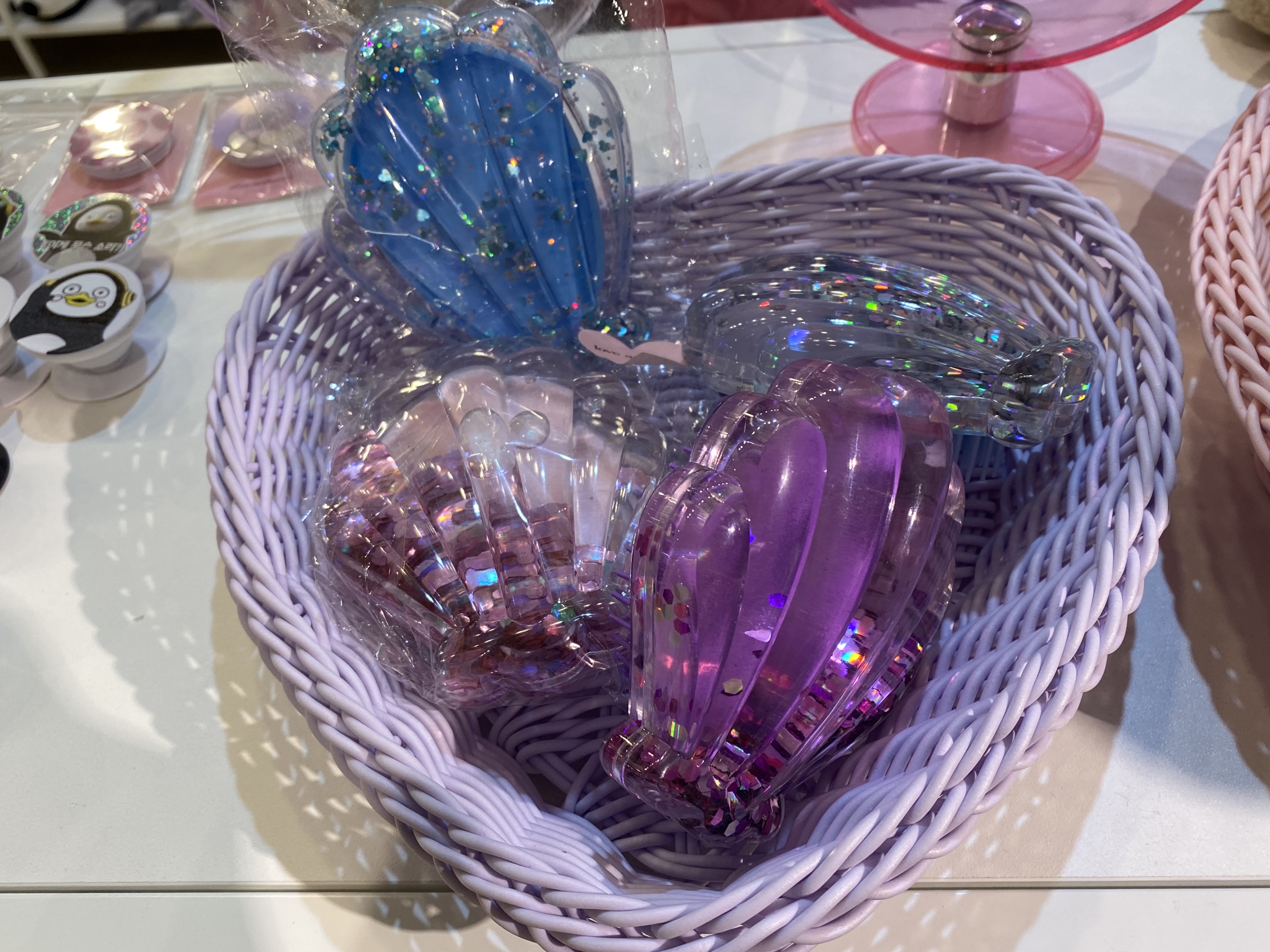 위 아래로 흔들면 반짝이가 흔들리는 조개빗도 있습니다