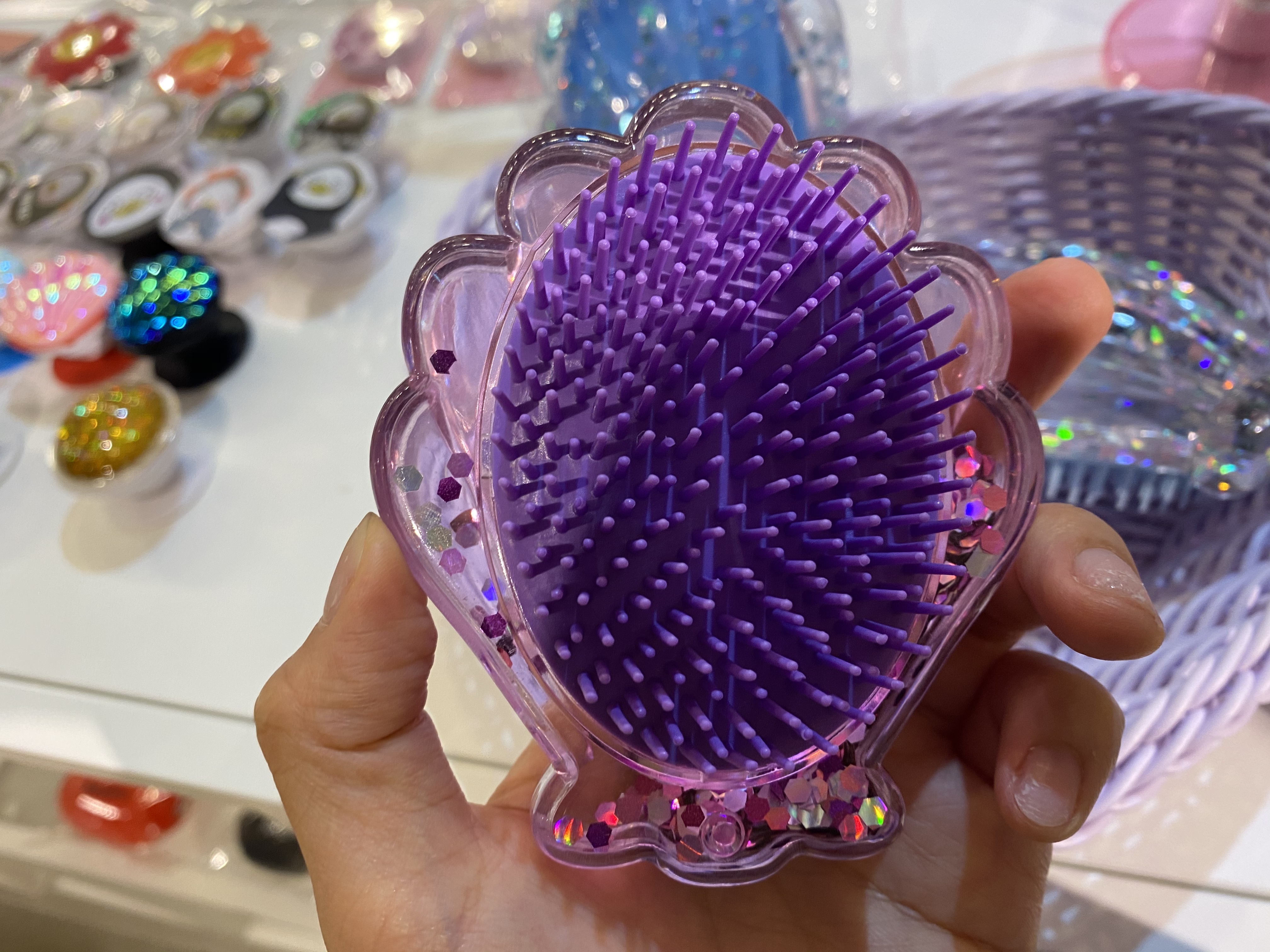 위 아래로 흔들면 반짝이가 흔들리는 조개빗도 있습니다