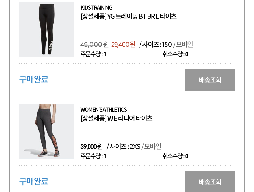 아디다스 레깅스 사이즈를 두개다 2XS(150) 로 구매한 이유는
