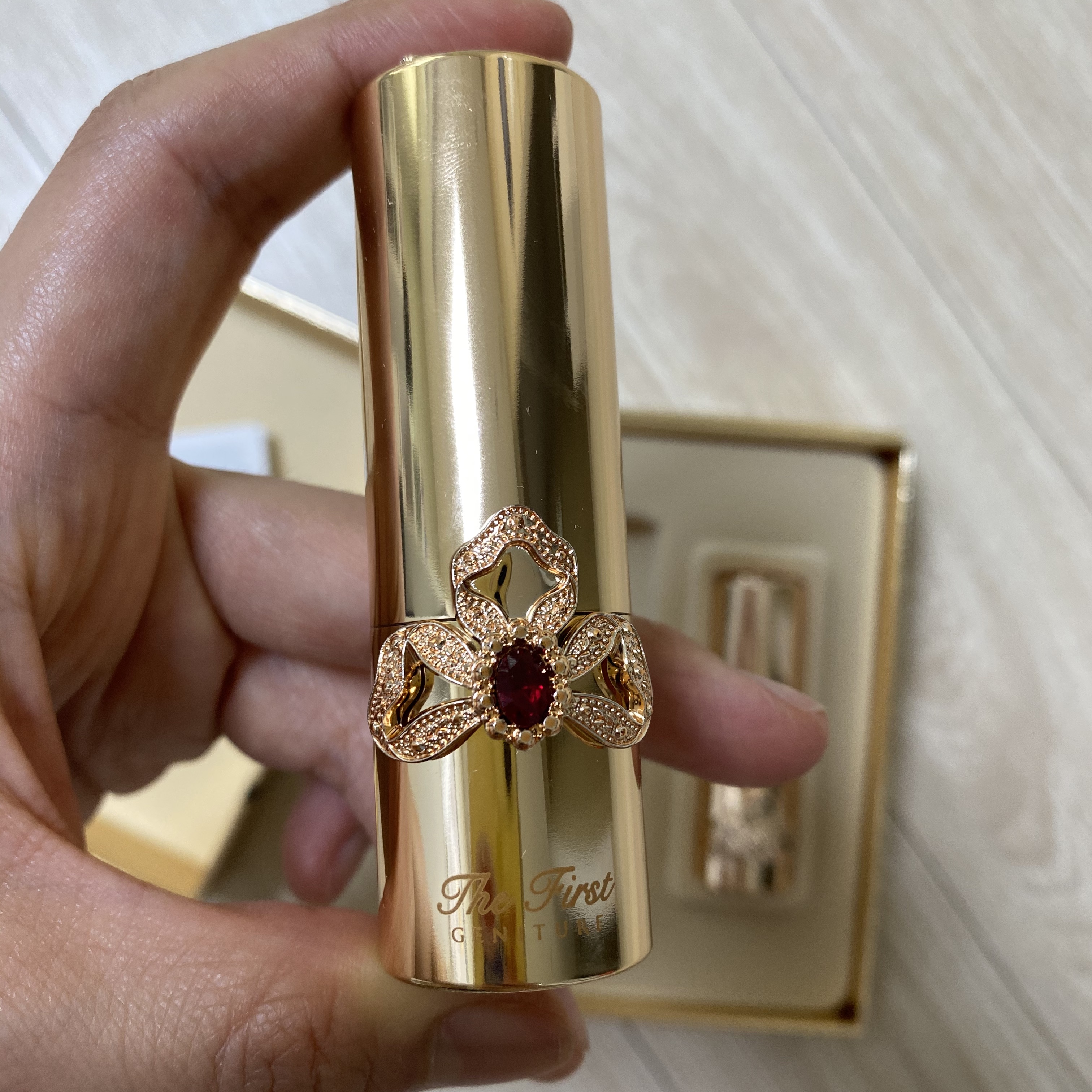 The first GENITURE LIPSTICK SET 라고 황금빛 패키지 위에 쓰여져있군요.