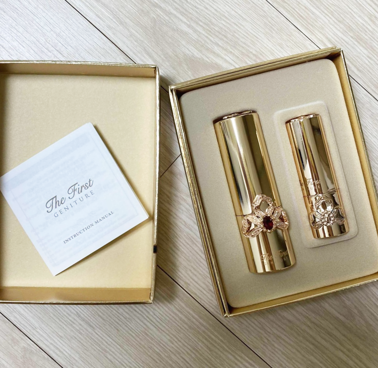 The first GENITURE LIPSTICK SET 라고 황금빛 패키지 위에 쓰여져있군요.