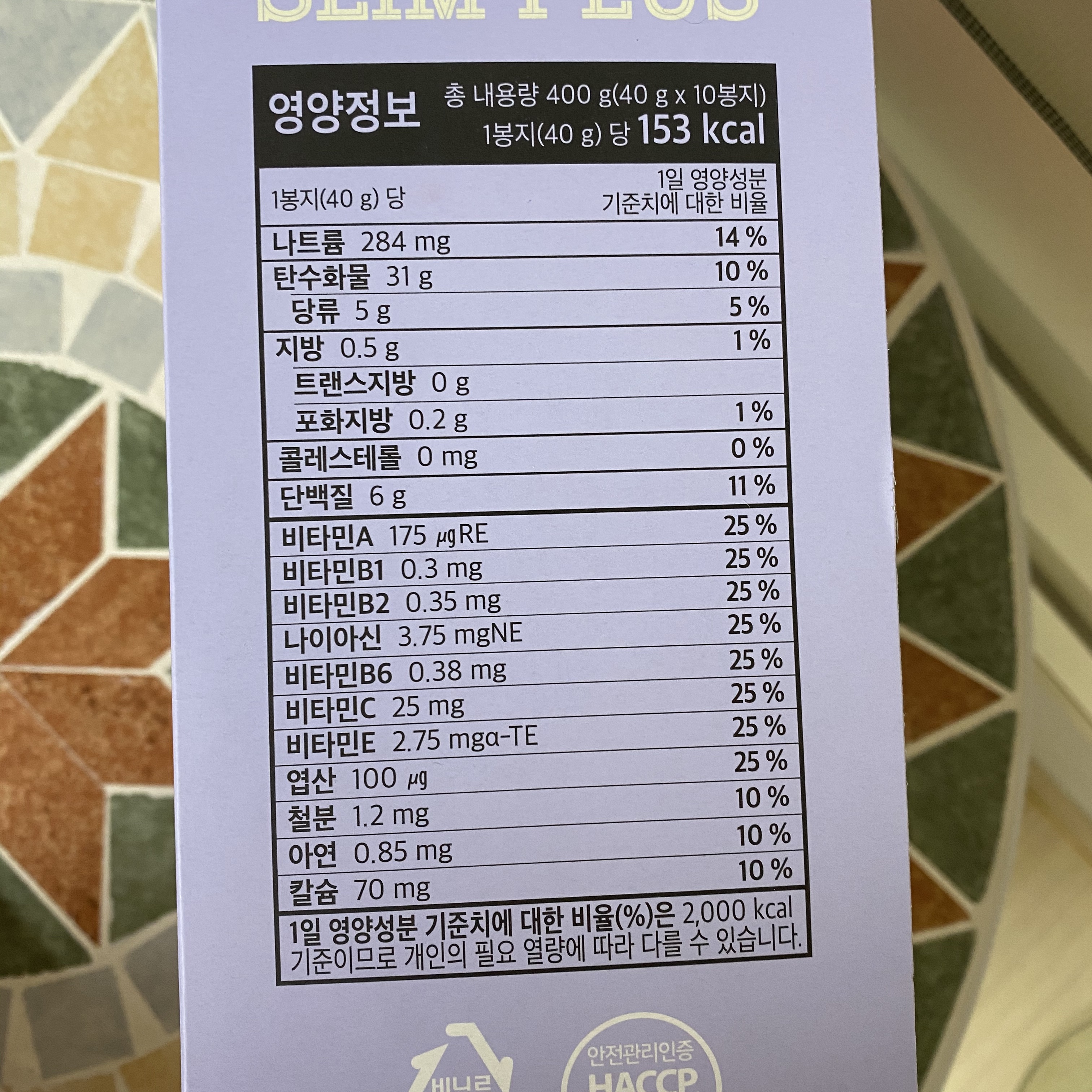 2봉지씩 먹는다고 하면 하루 50%에 달하는 각종비타민, 엽산을 먹는 것이죠^^