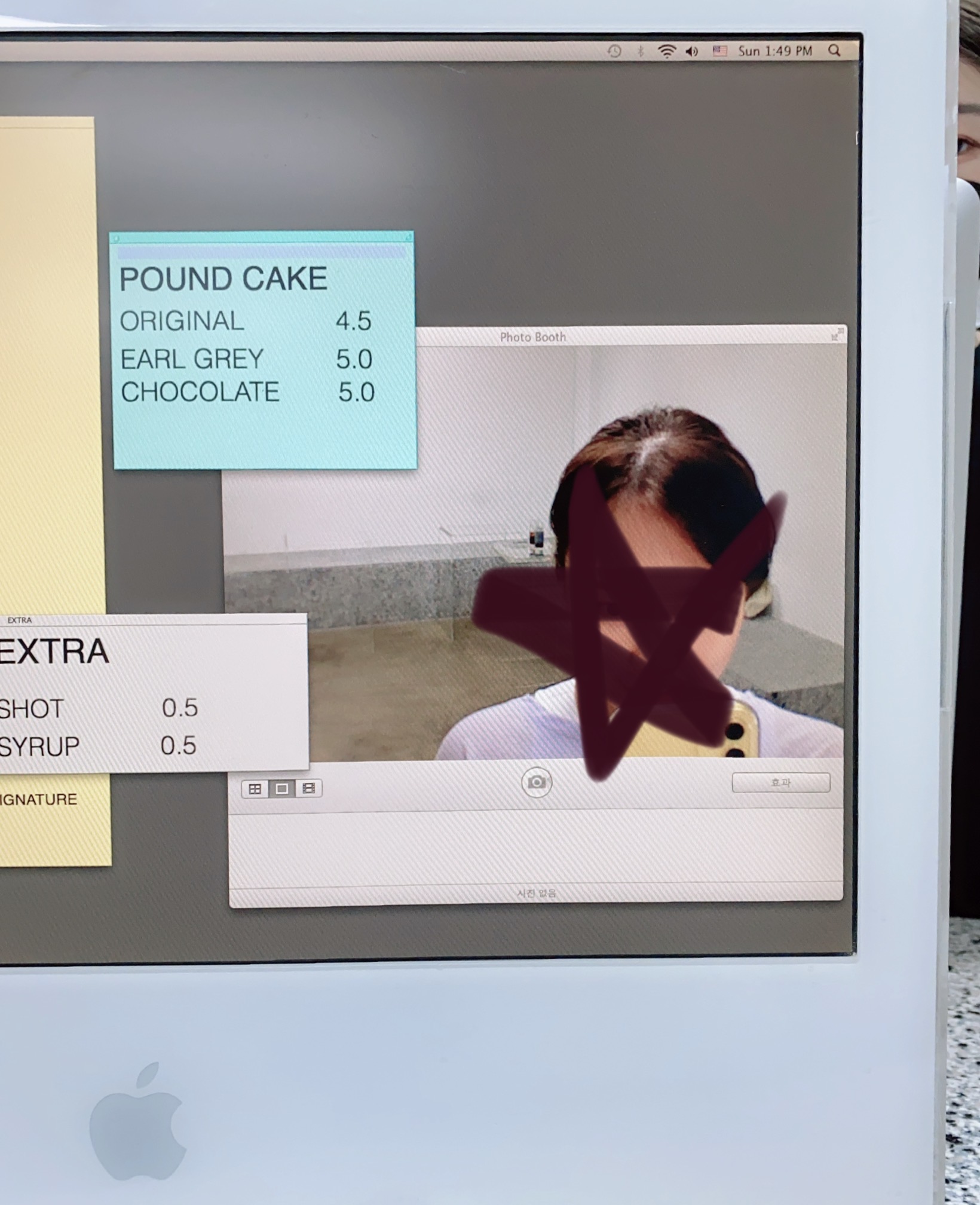 음료 시킬때도 저렇게 제 모습이 카메라에 비칩니다 ㅋㅋ