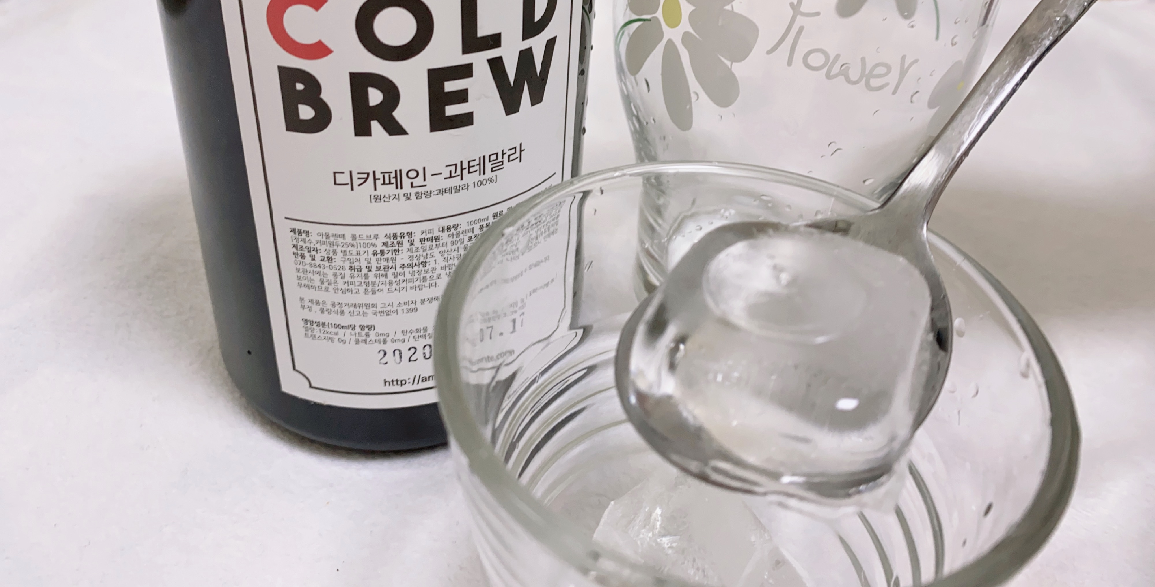 지금은 일단 언니가 얼음부심을 하도 부려서 언니가 얼린 얼음이랑 아몰렌떼 디카페인 콜드브루랑 마셔보겠습니다.